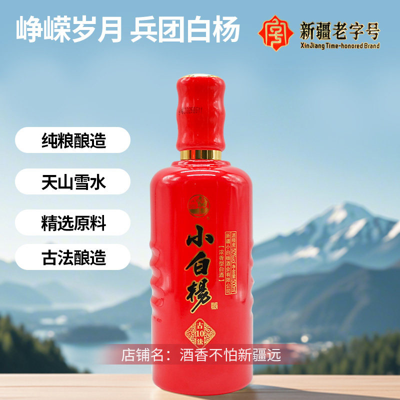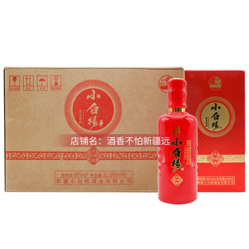 📚 新疆小白杨老窖古法10年50度500毫升浓香型白酒整箱6瓶纯粮包邮