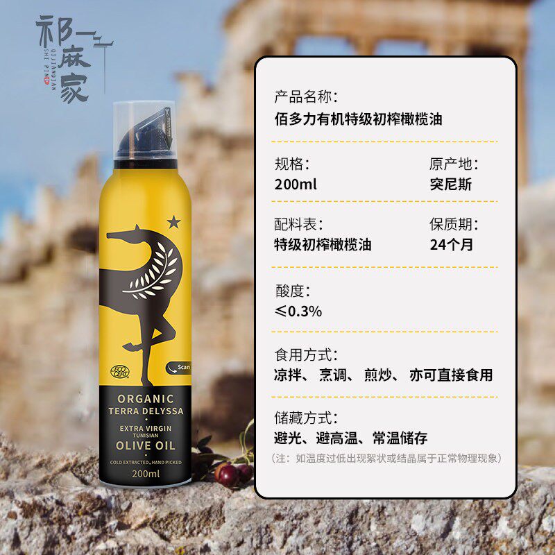 📚 突尼斯原装进口佰多力有机特级初榨橄榄油200ml食用油喷雾装家用