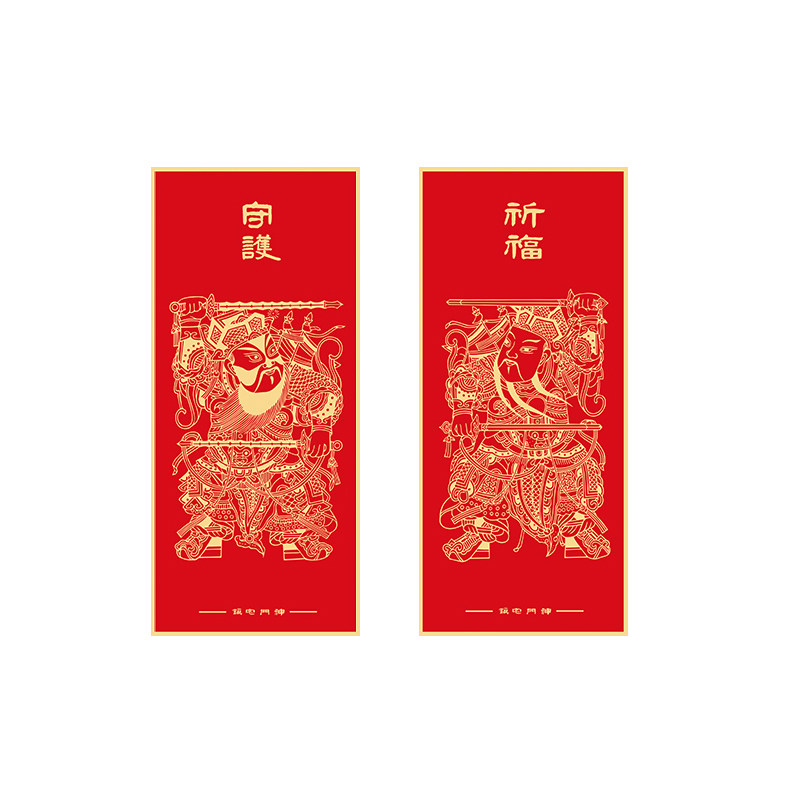 📚 传统门神贴纸尉迟恭秦琼红色祈福新年春节门贴家用中国风新年装饰