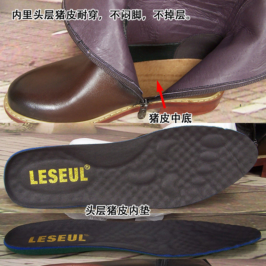 📚 Leseul马靴深棕色潮流牛皮阅兵仪仗队男长马术西部骑士骑马真皮靴
