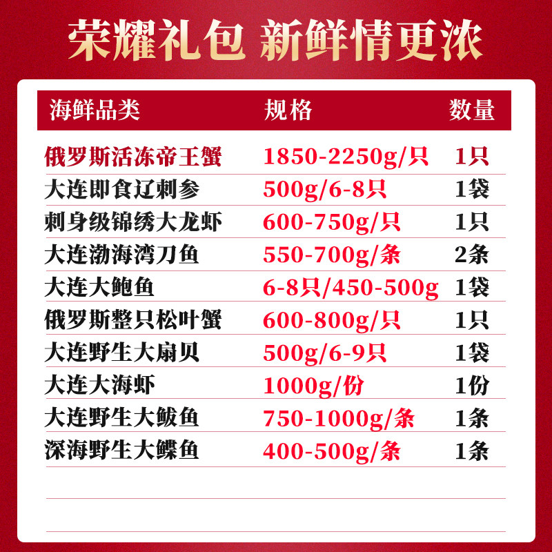 🍤这款套餐内含的是新鲜渤海湾带鱼、虾蟹等海鲜,每一口都是满满的海洋味道。无论是送给长辈还是自己享用,都是非常合适的选择。