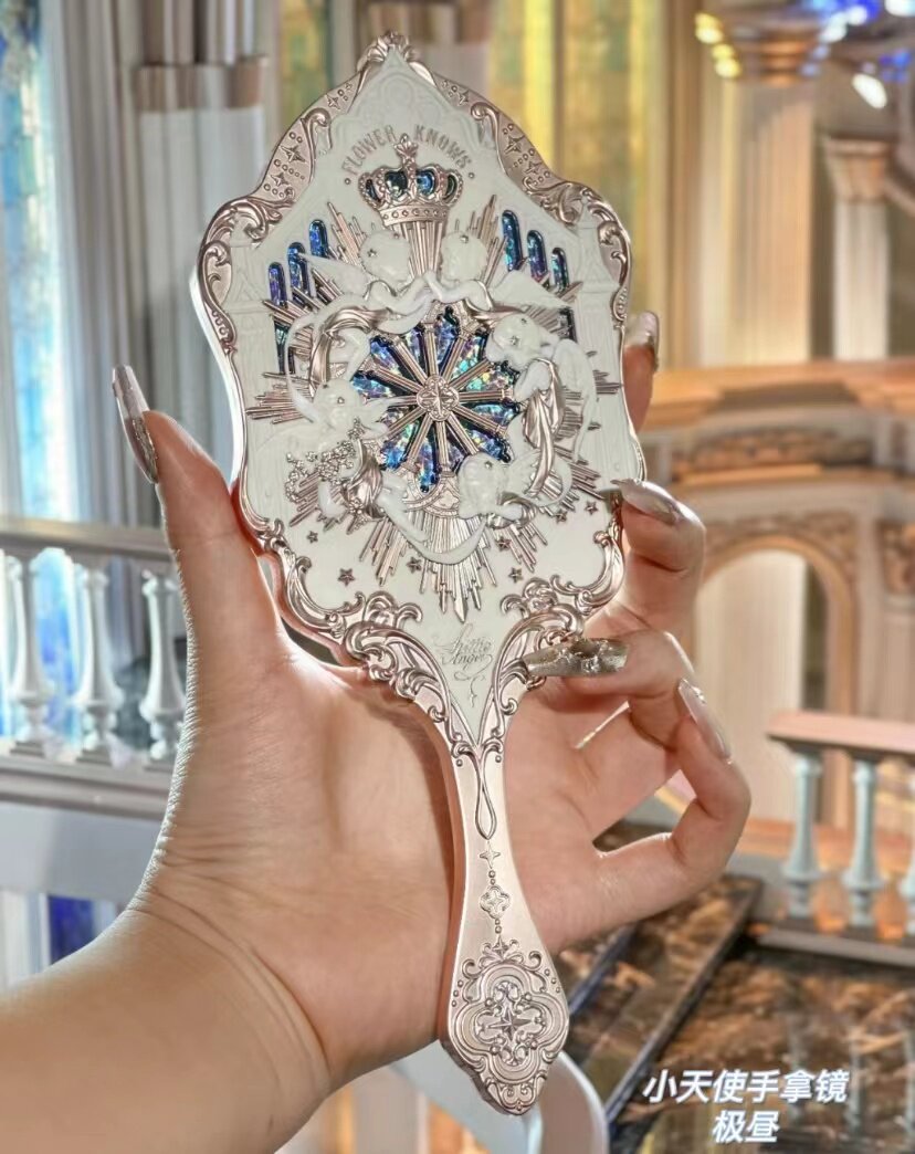 📚 花知晓手持镜小天使月光人鱼化妆镜随身便携时尚亚克力小镜子单面