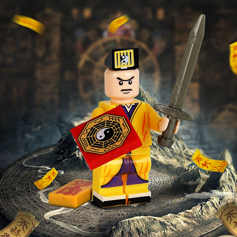 📚 益智国产小僵尸一眉道长林正英夜光中国风人仔拼装积木玩具男儿童