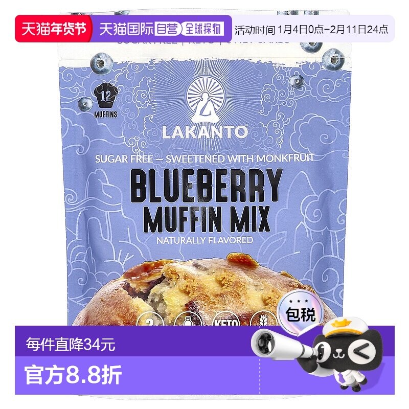 📚 香港直发lakanto蓝莓英格兰松饼混合粉无糖无麸质营养192g