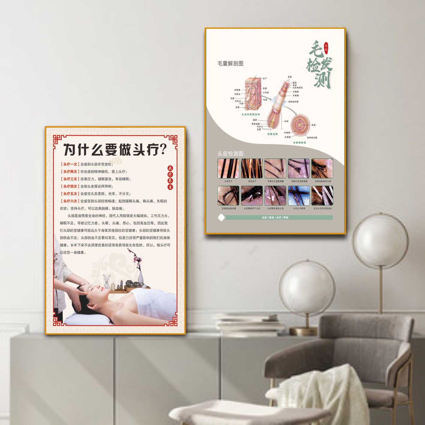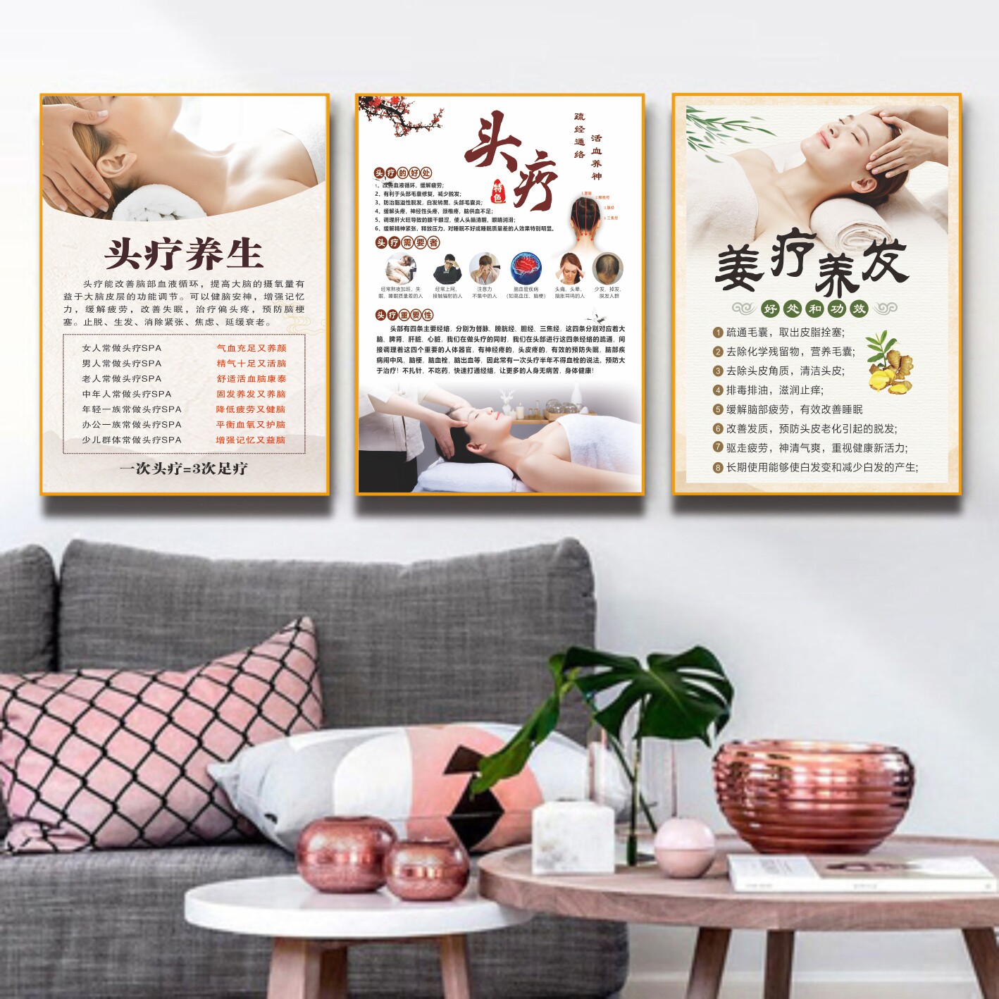📚 头疗头皮保养头发护理特色头疗姜疗美容院海报挂画中医养生定制