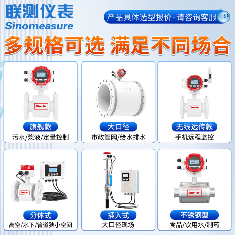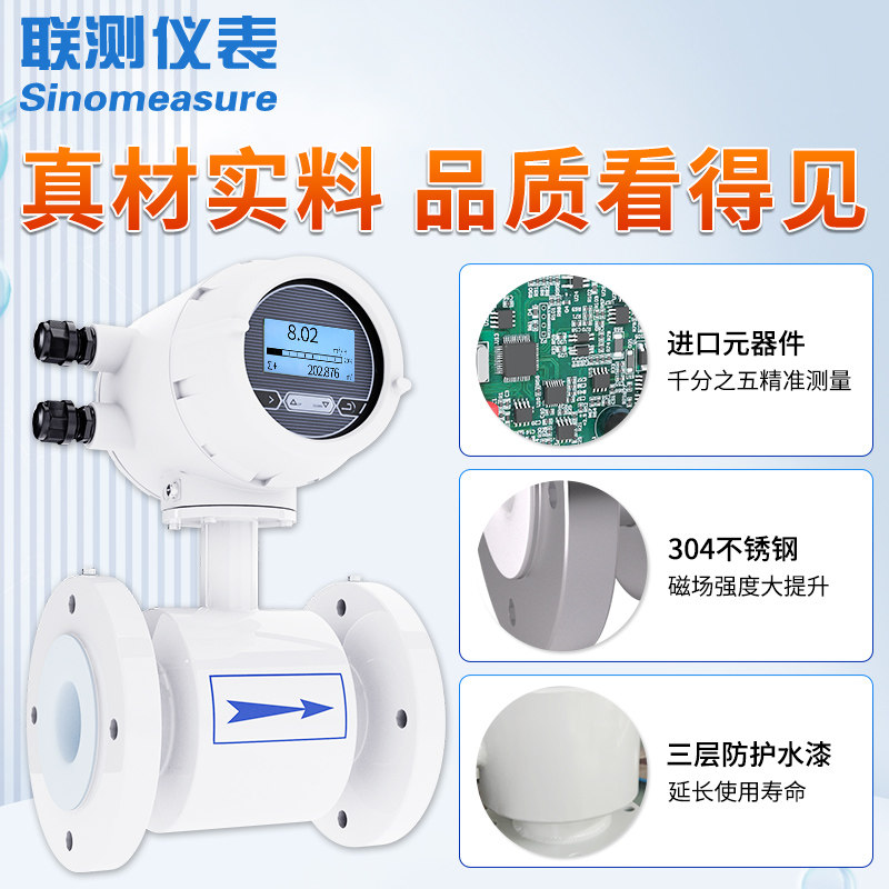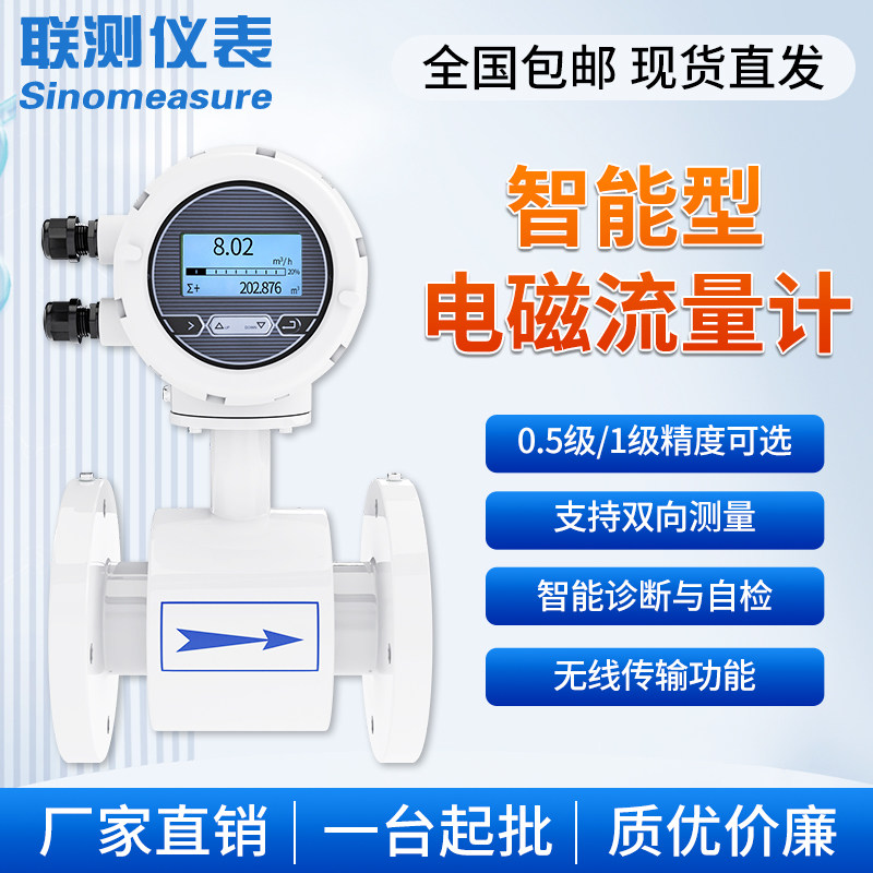 📚 联测智能电磁流量计管道式高精度液体污水分一体数显电子dn50/100