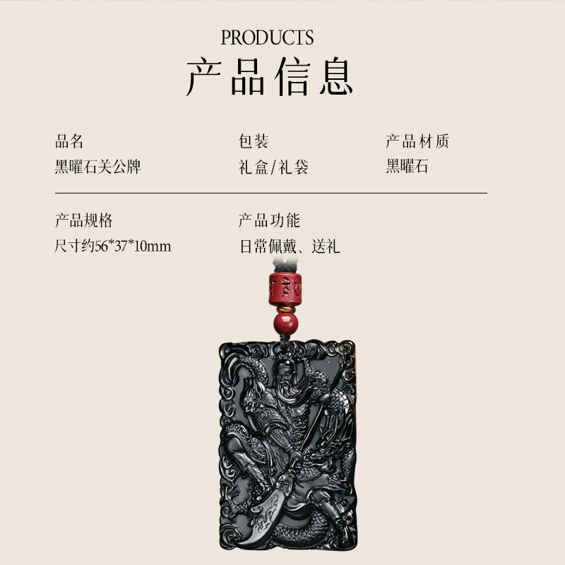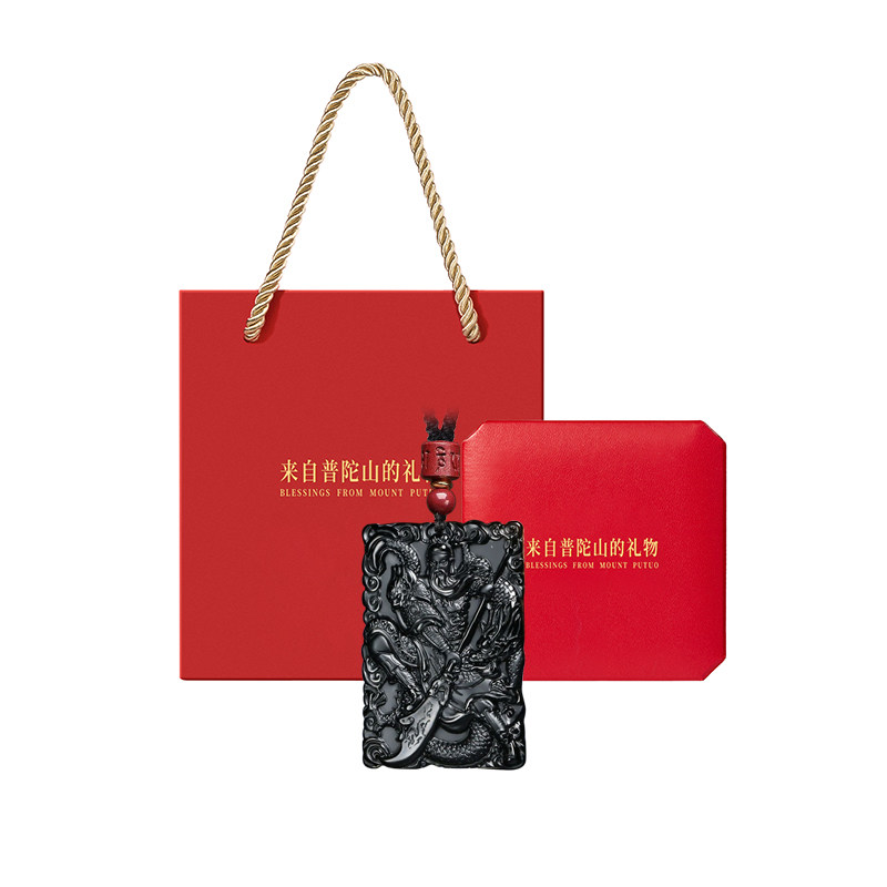 📚 遇见普陀山天然黑曜石关公吊坠男士武财神关羽关二爷项链挂件礼物