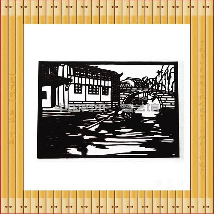 📚 江南小镇剪纸窗花风景剪纸画中国特色手工艺品中国风美丽乡村建设