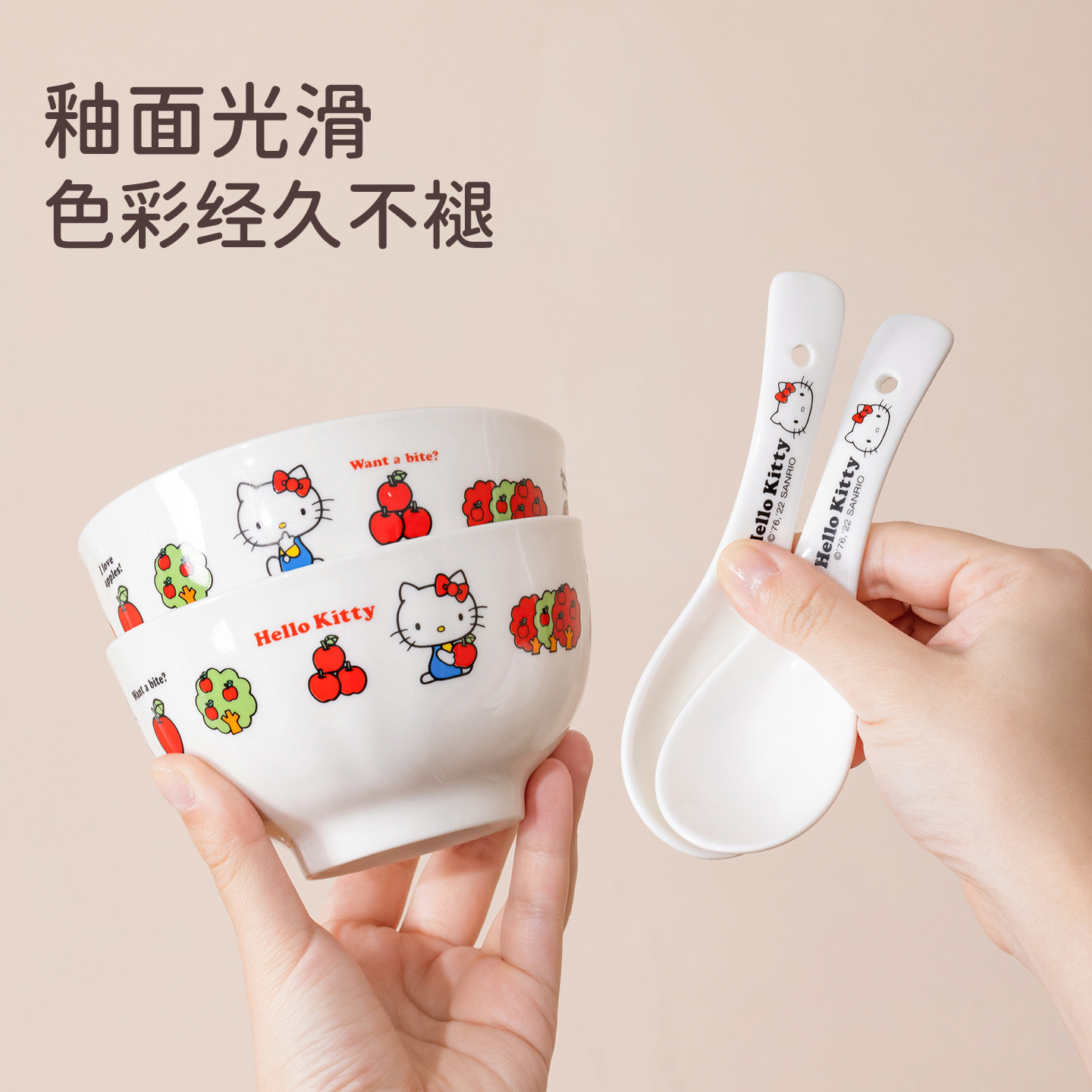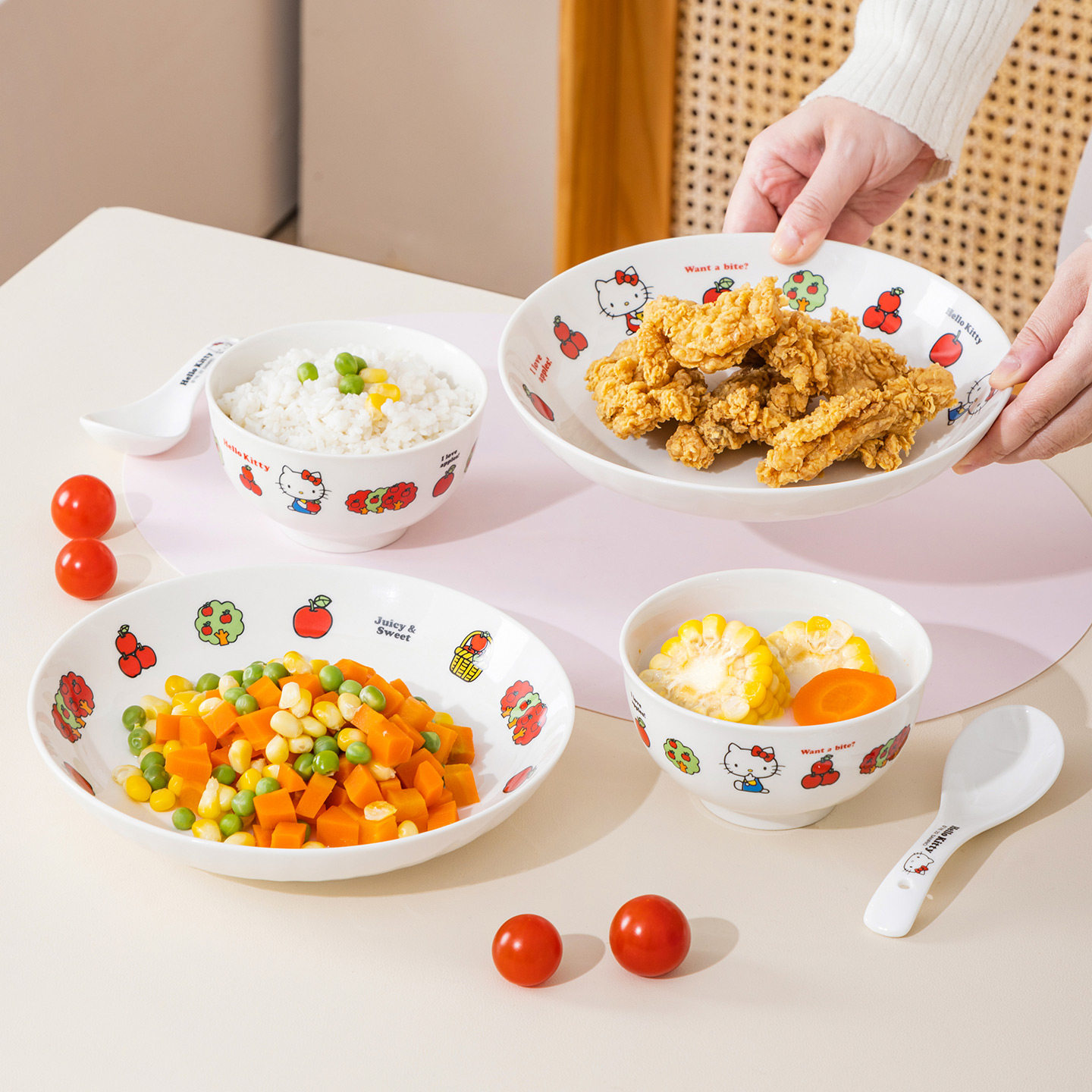 📚 HelloKitty卡通陶瓷碗盘套装家用可爱餐具女生高颜值碗盘勺6件套