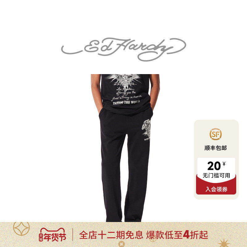 📚 Ed Hardy埃德哈迪秋季新款美式复古烫钻虎头男士休闲直筒长裤