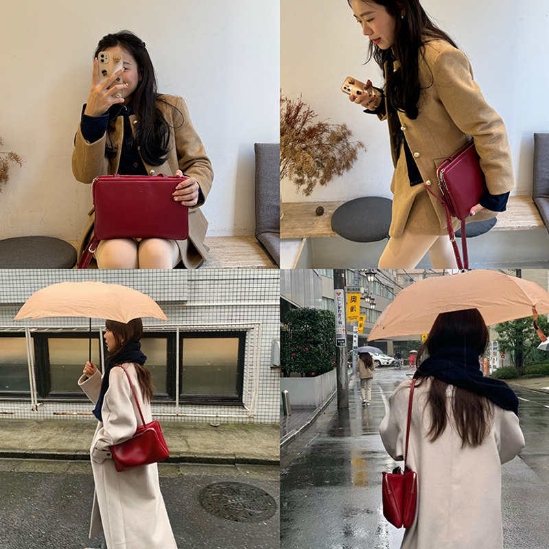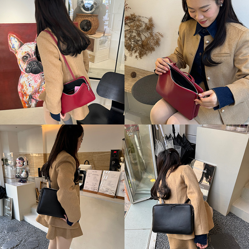 📚 【公子雯】双子包韩国小众复古牛皮女全秀林同款红色腋下单肩斜挎