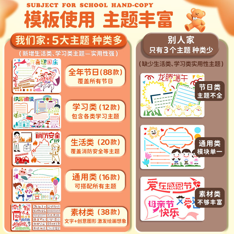 📚 手抄报模板大全小学生用2025新款小报画画临摹神器镂空绘画模板国庆节小学一年级万能模板尺子初中生半成品