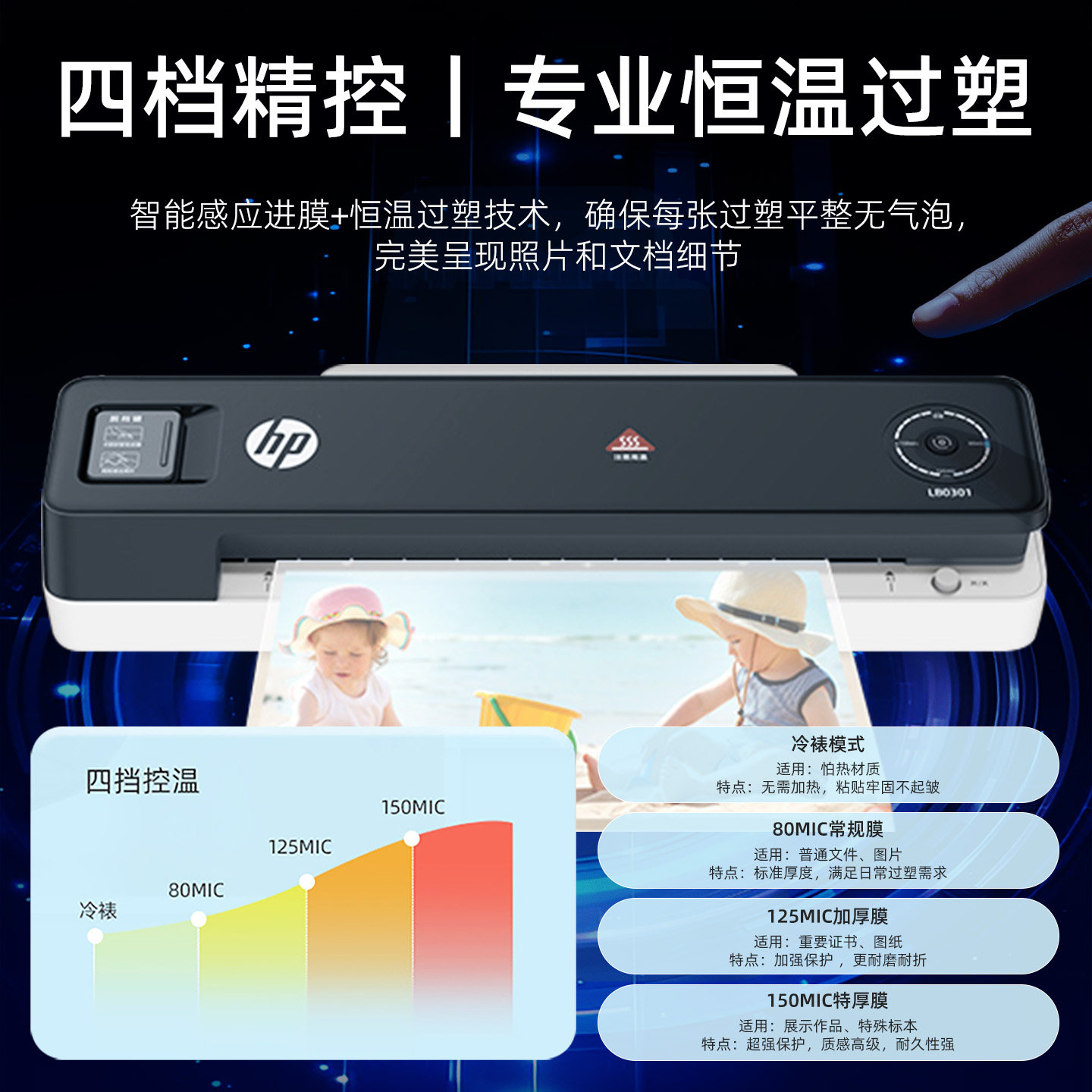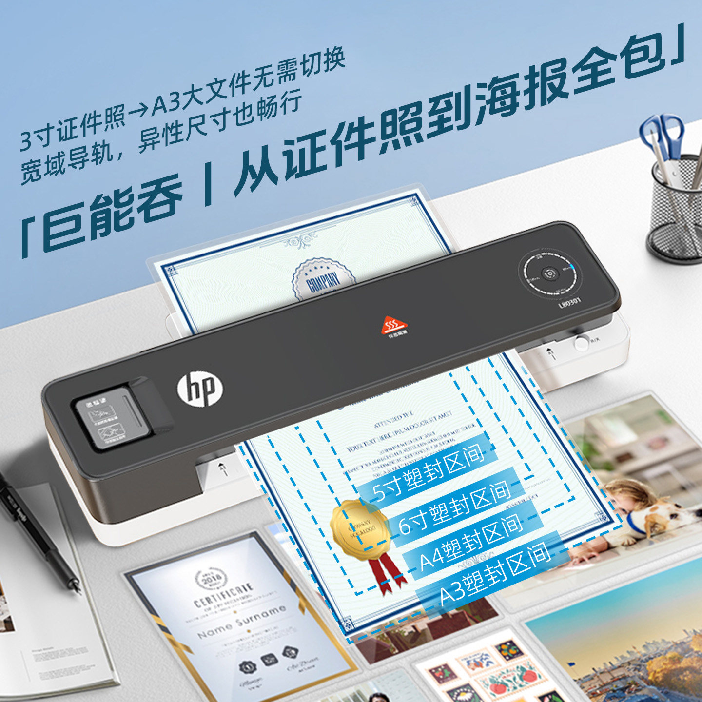 📚 惠普塑封机办公家用热裱覆膜小型商用适合多尺寸文件塑膜机a3/a4通用压膜机相片迷你照片过塑机封膜机过塑