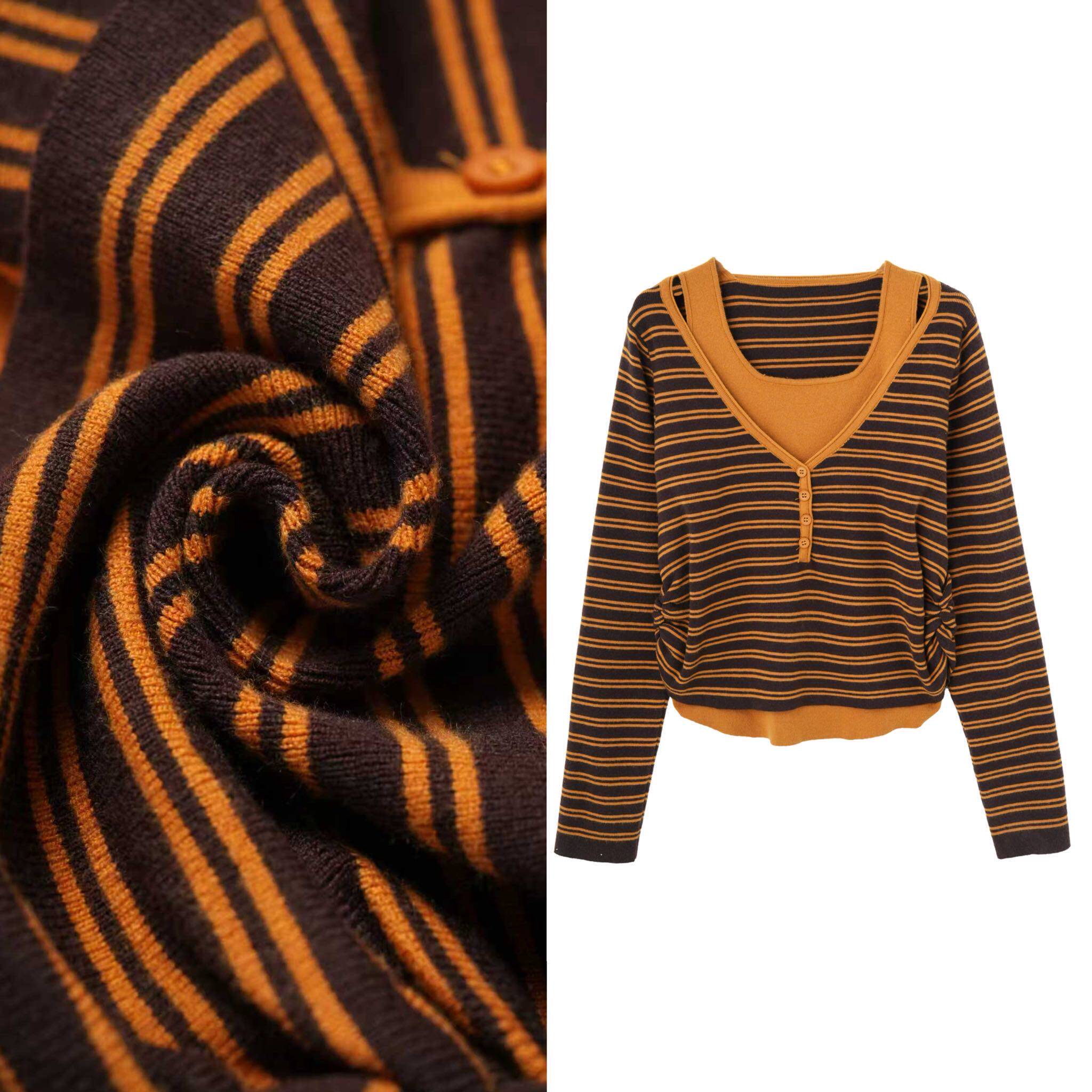 📚 【甜甜专享】韩风复古假两件设计感撞色休闲百搭显瘦针织衫