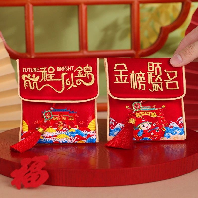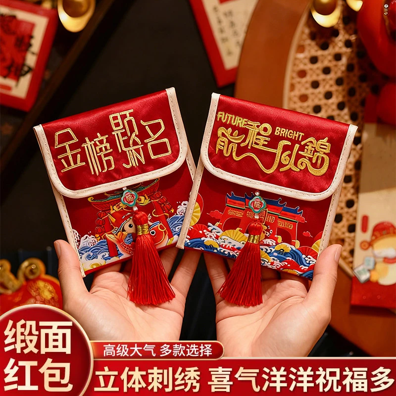 📚 国潮红包袋春节过年流苏刺绣丝绸利是封新年压岁钱金榜题名立体