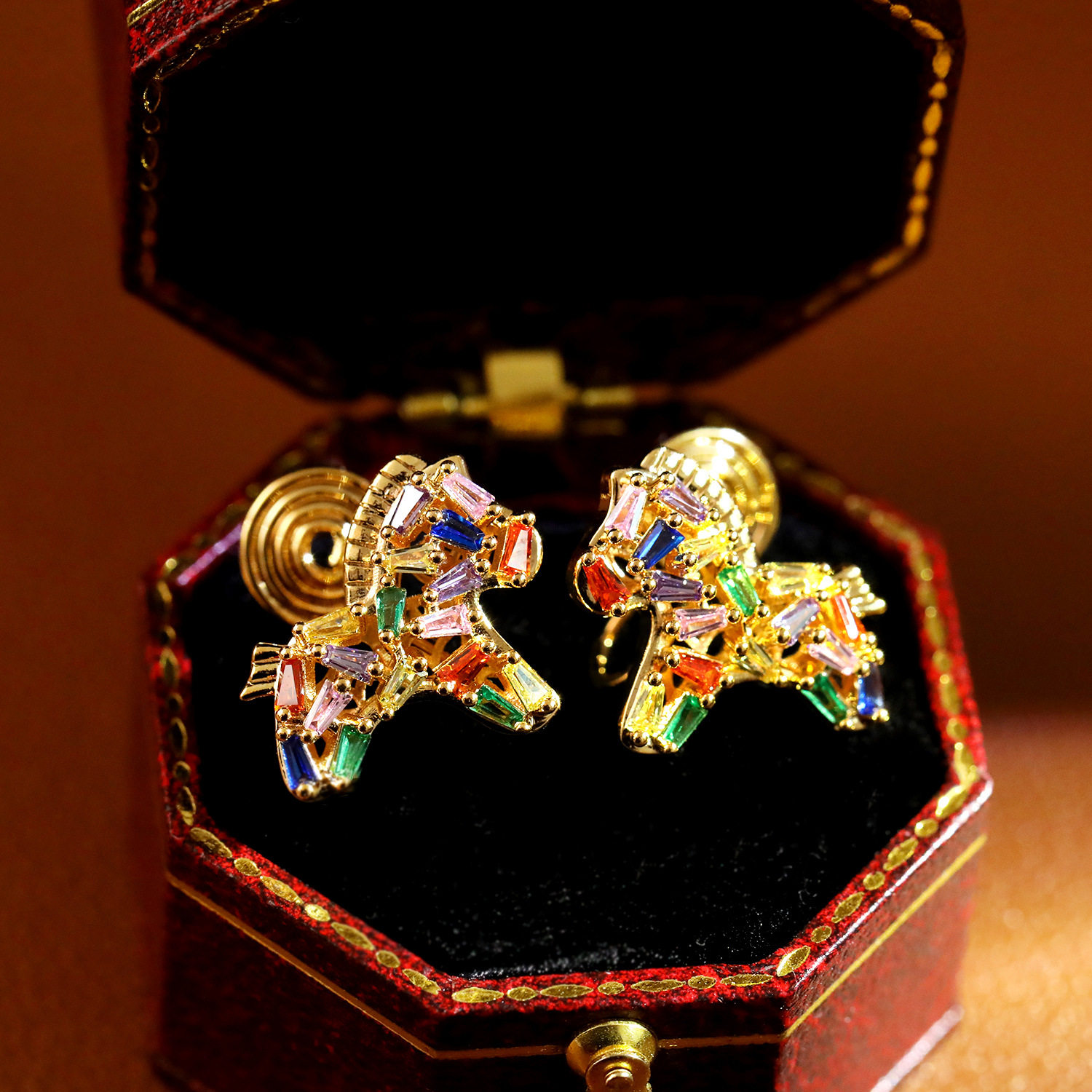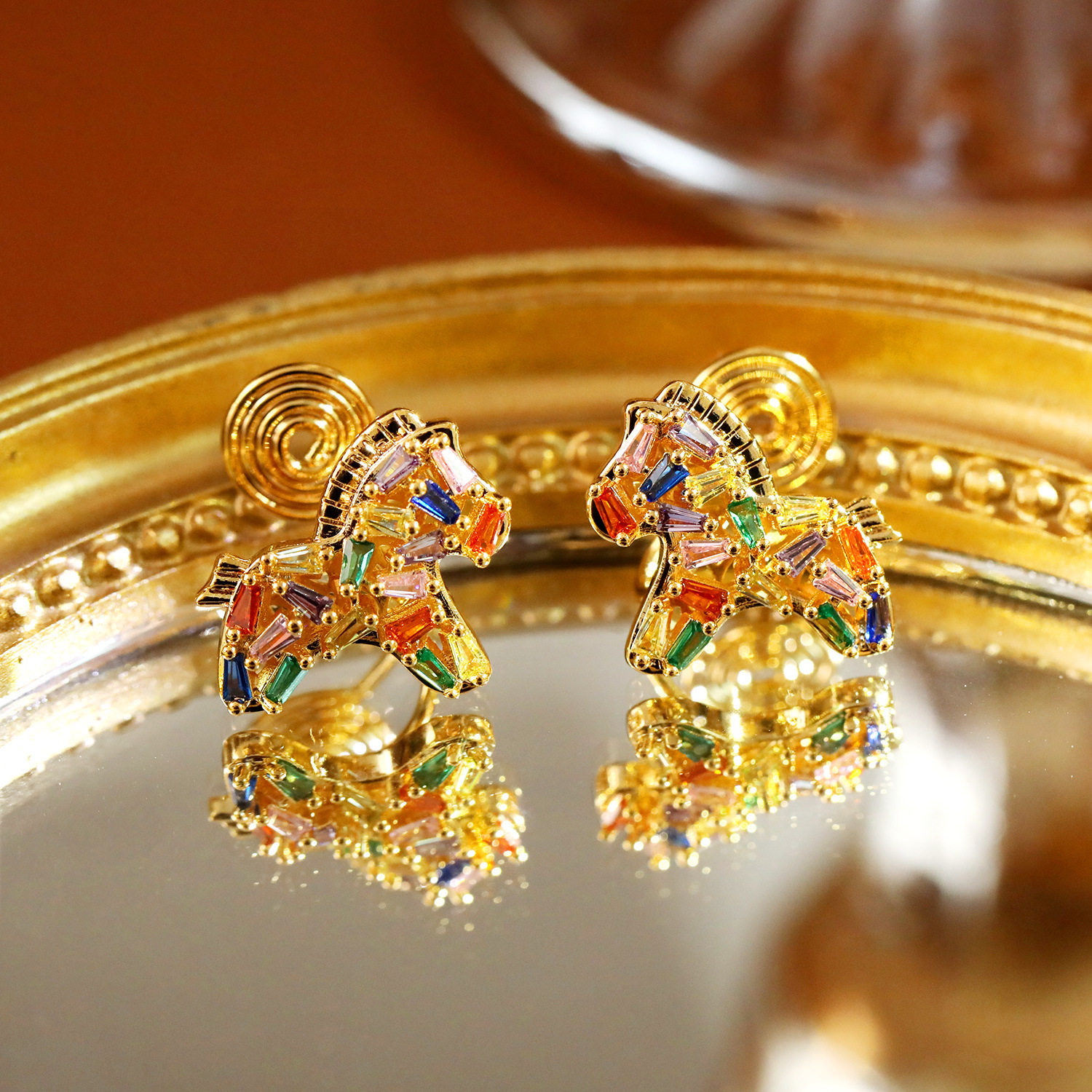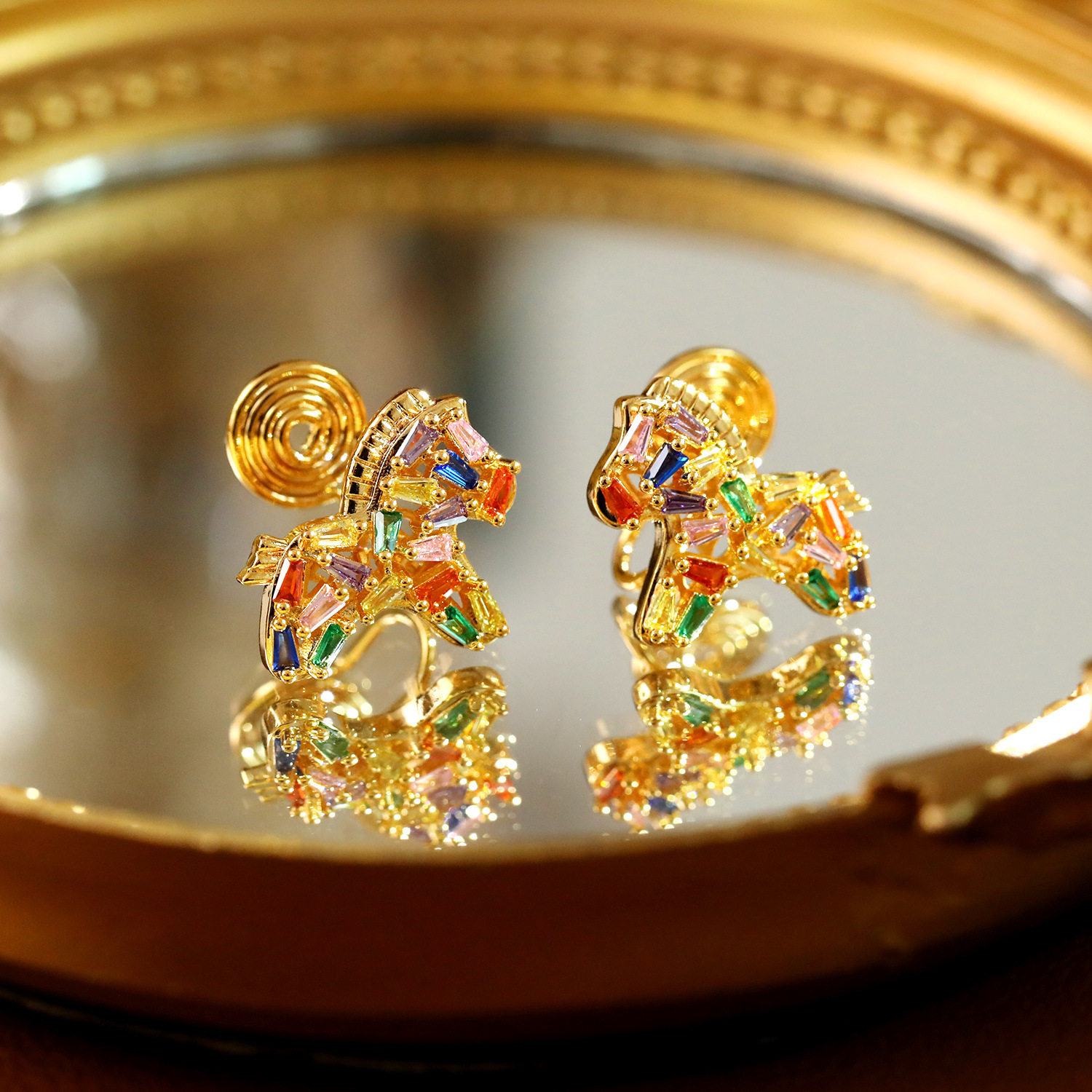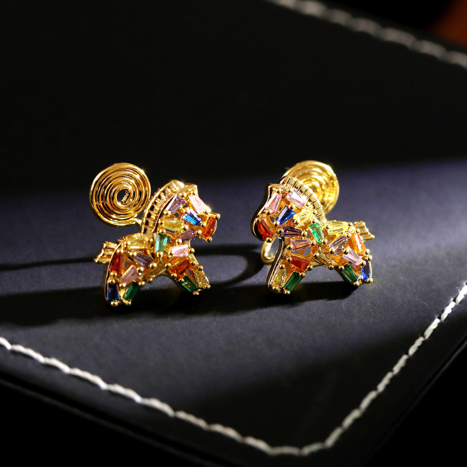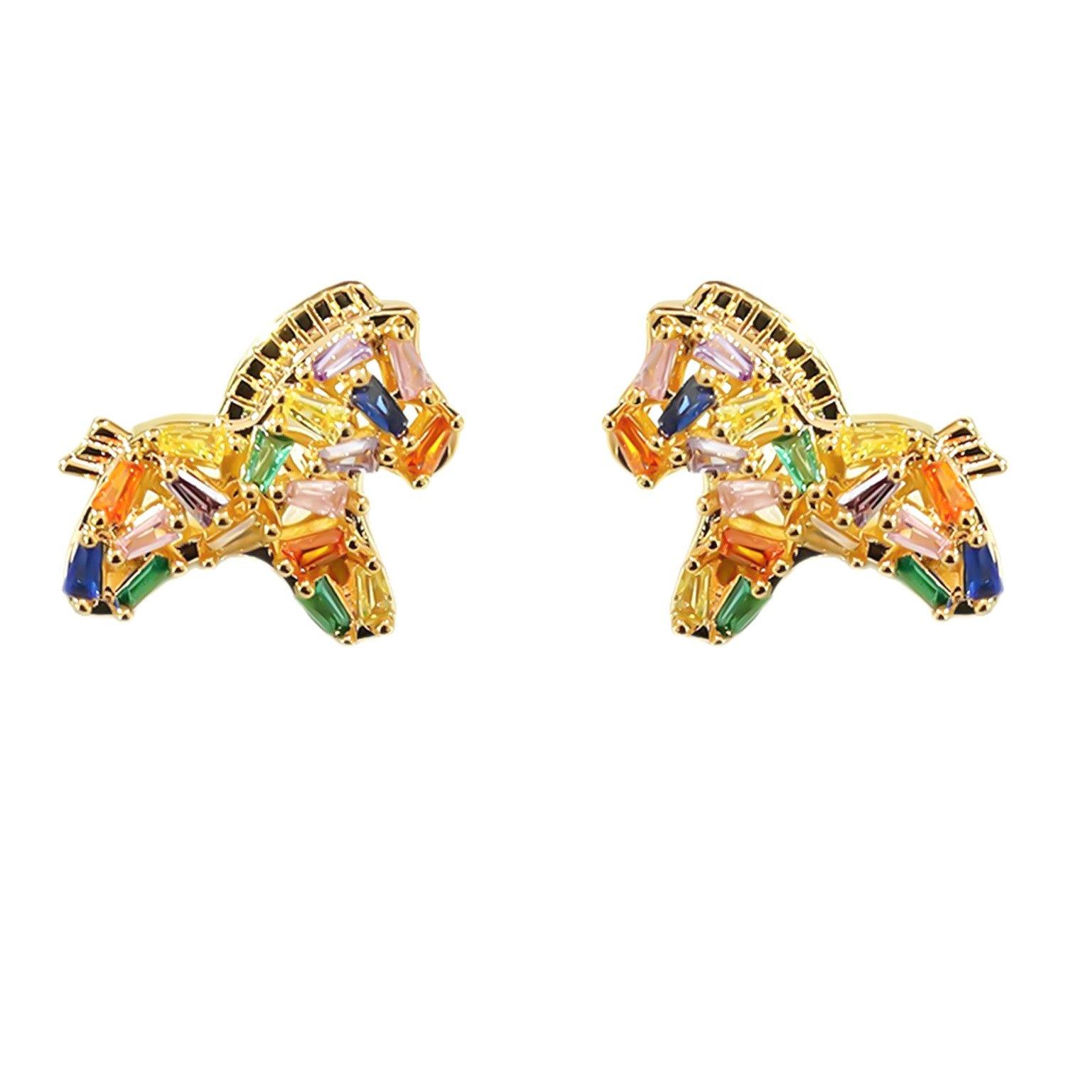 📚 马上有钱七彩锆石小马耳夹生肖马无耳洞耳环高级感超闪减龄耳饰潮