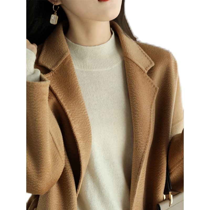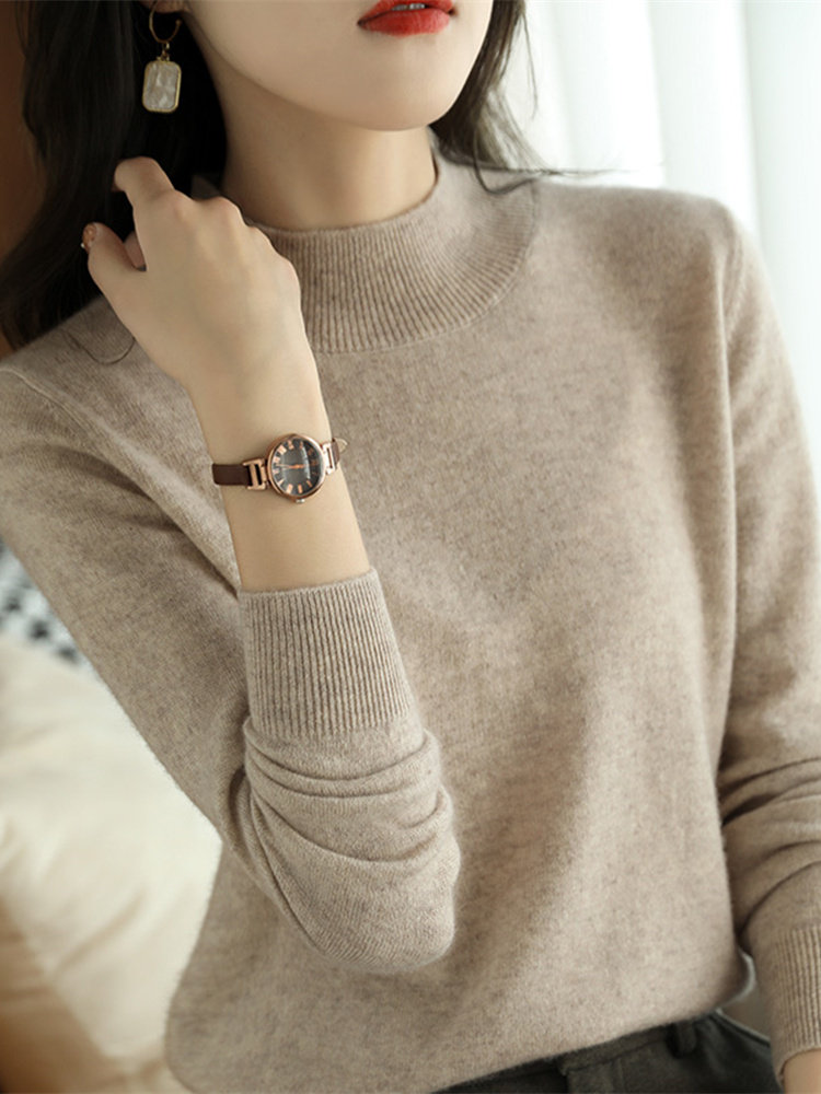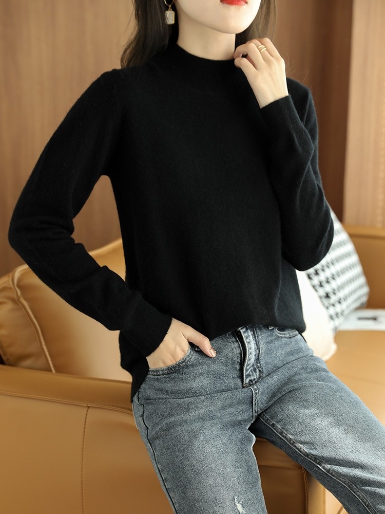 📚 秋冬半高领不起球爆款毛衣女短款中领宽松羊毛衫针织厚内搭打底衫
