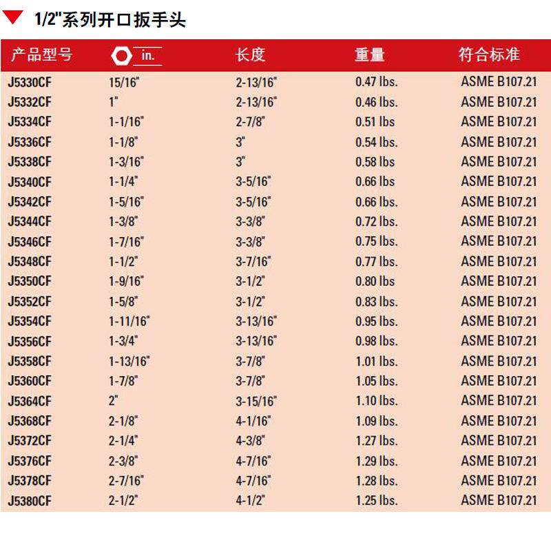 📚 1/2方口 12.5MM系列英制开口扳手头 开口2-1/4寸 J5372CF