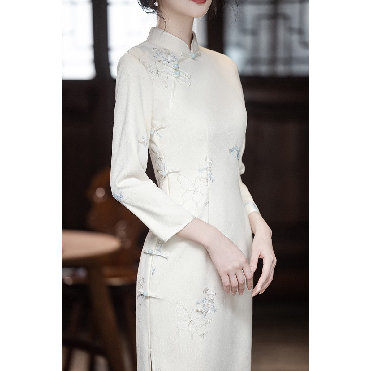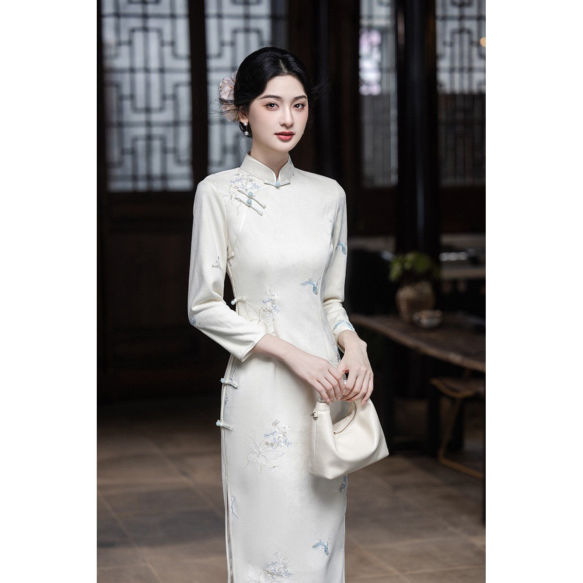 📚 旗袍2025新款冬季长袖年轻款气质高端茶服女刺绣茶艺师服装女