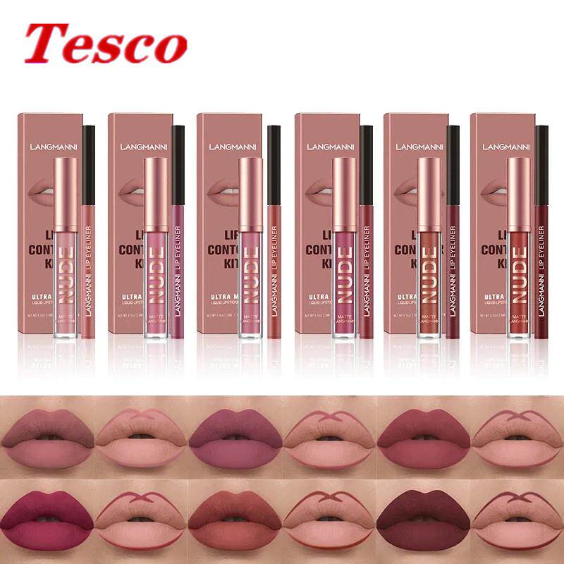 📚 Langmanni Matte Lips Pen 2pcs Lipstick Lipliner Set Makeup