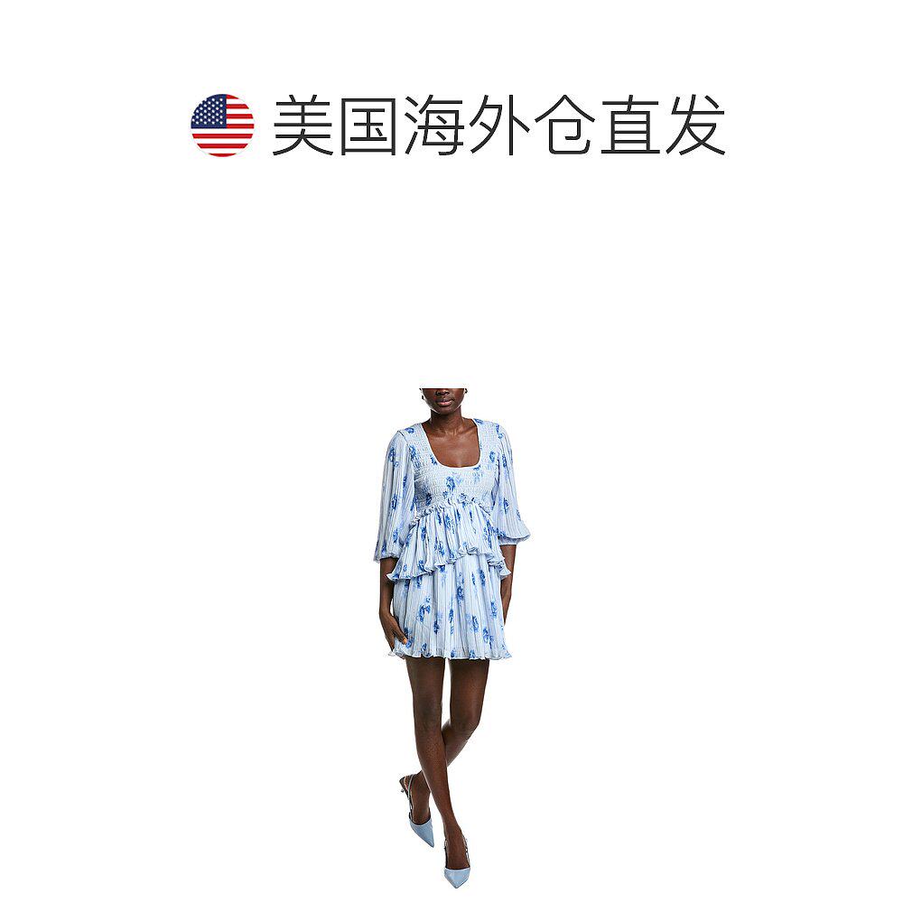 📚 自营GANNI Pleated Georgette Flounce Smock Mini Dress - gray