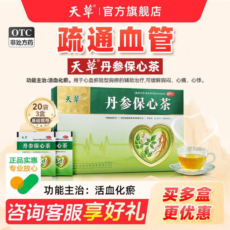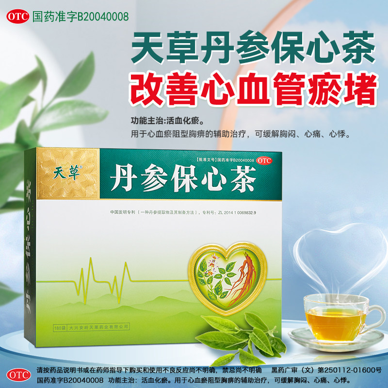 📚 天草丹参保心茶旗舰店缓解胸闷气短心慌心悸心脑血管丹心保参茶