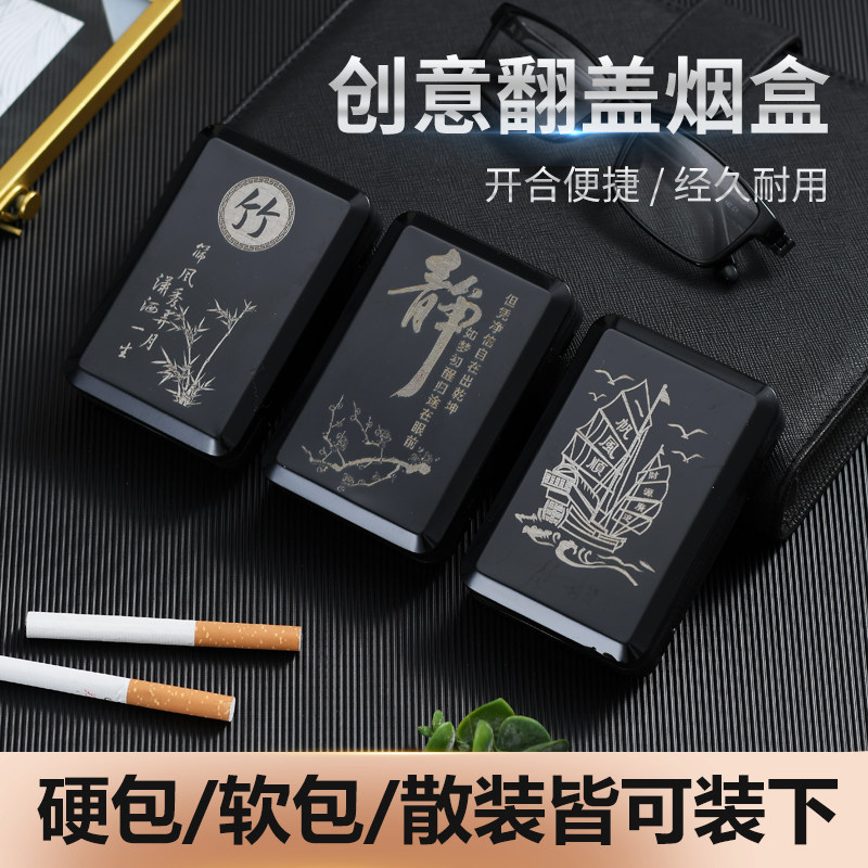 📚 铁树金属烟盒翻盖软硬包散支都可装刻字烟夹男士户外礼品轻巧耐用