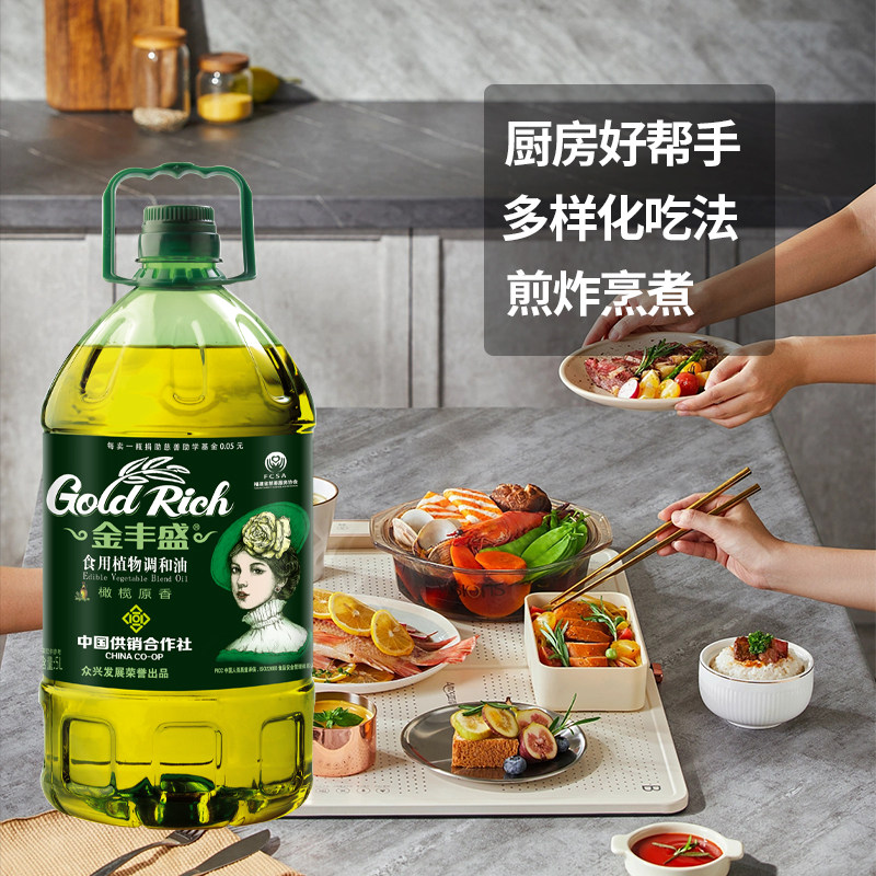 📚 金丰盛橄榄原香型食用植物调和油5Lx4桶家用炒菜食用油团购批发