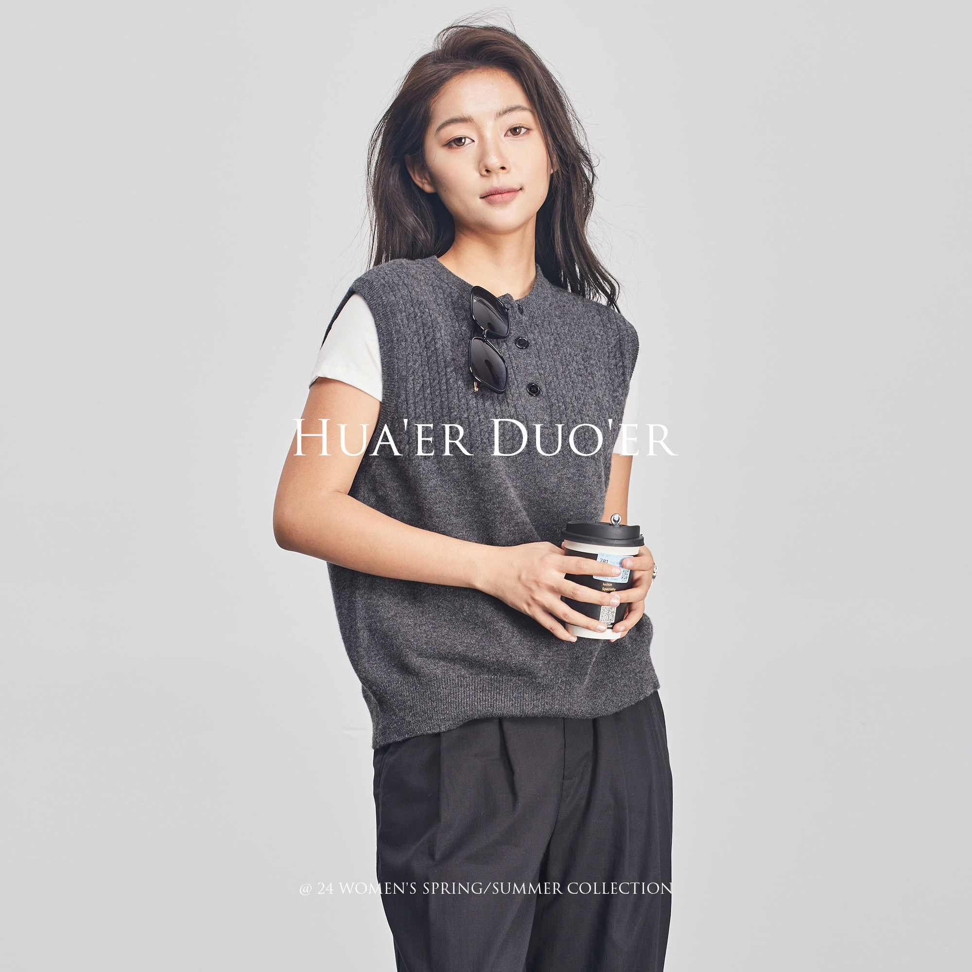 📚 Hua'erDuo'er秋冬纯羊毛针织马甲女外搭慵懒老钱风背心坎肩毛衣