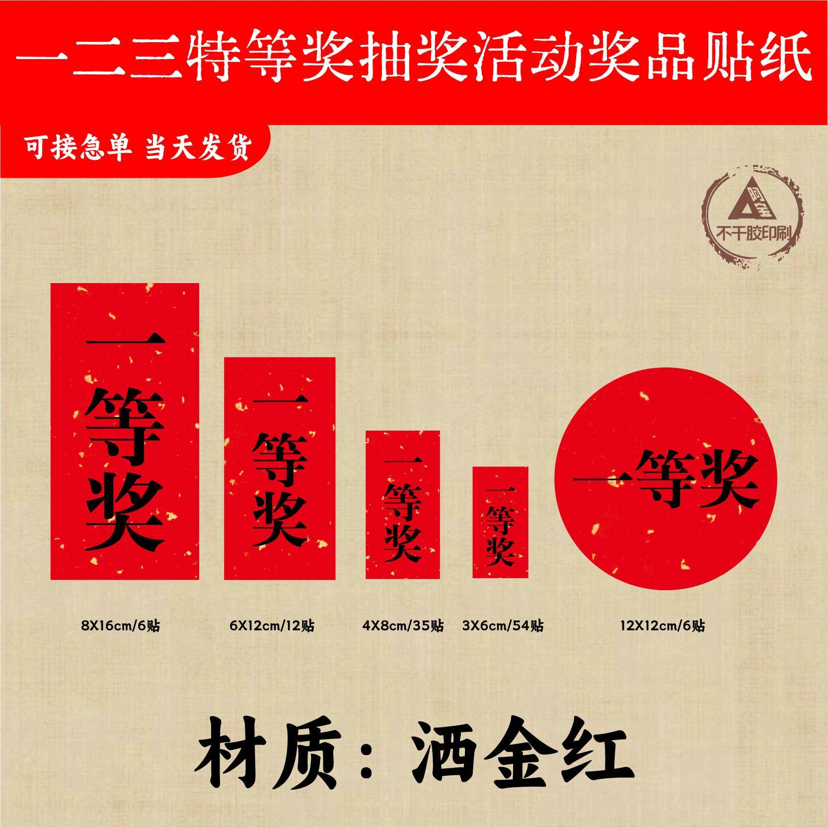 📚 不干胶贴纸奖项奖品数字贴定做一等奖幸运奖特等奖自粘标签贴印刷