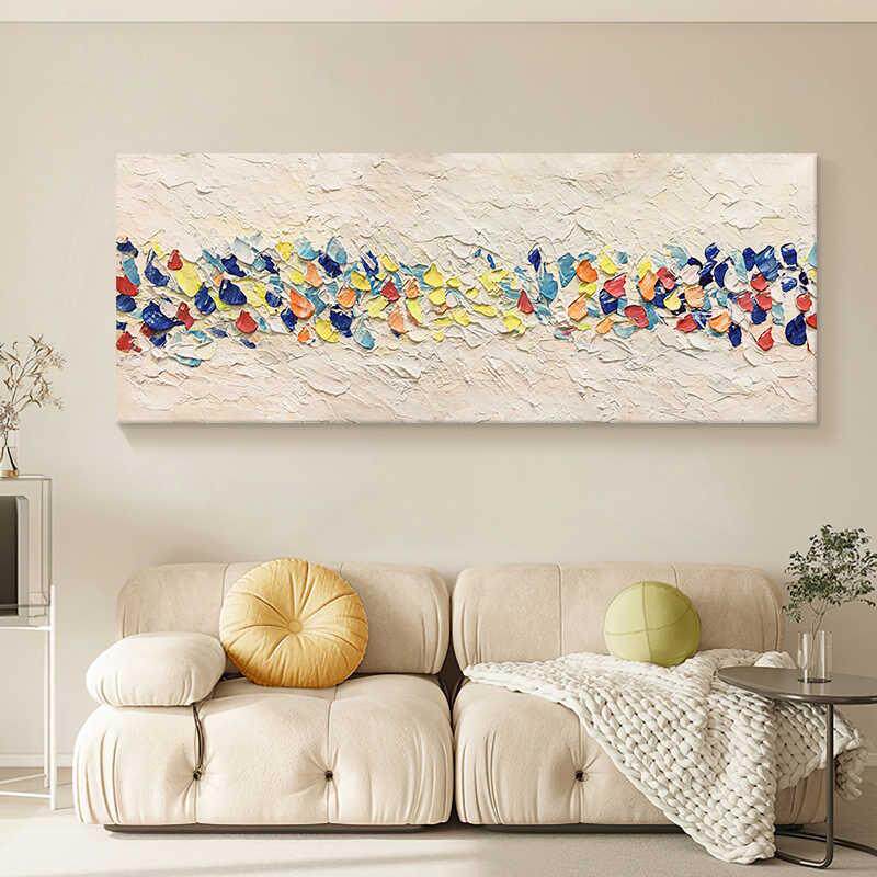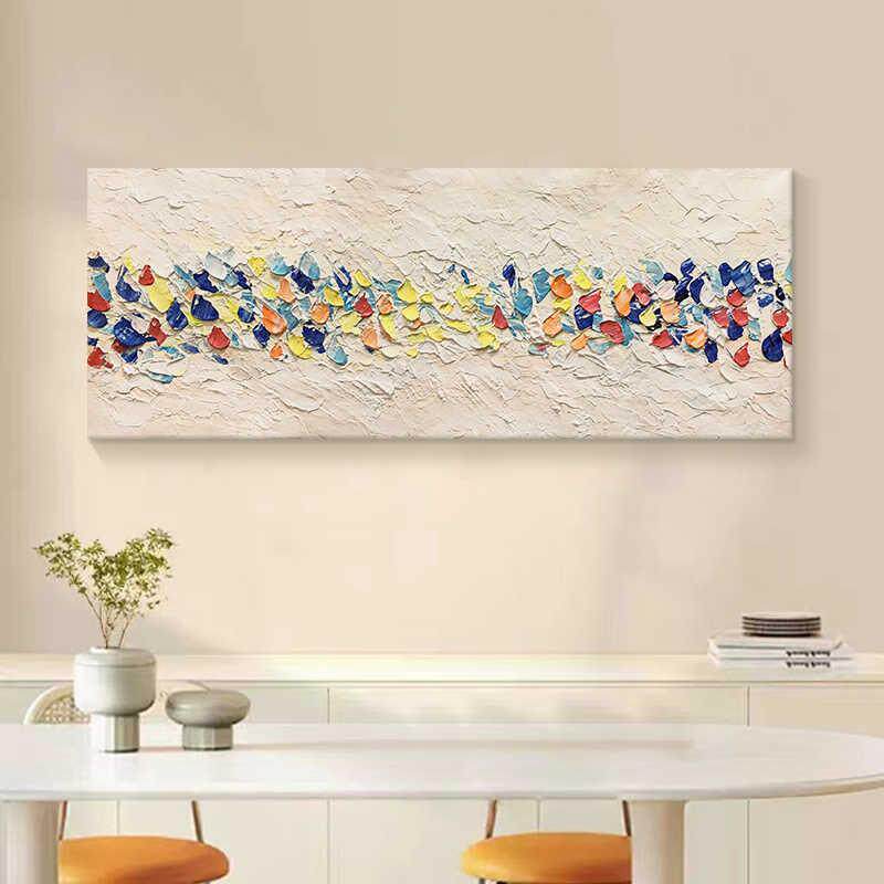 📚 抽象彩色砂岩纹理客厅横向装饰画艺术壁画油画主卧室床头横版挂画