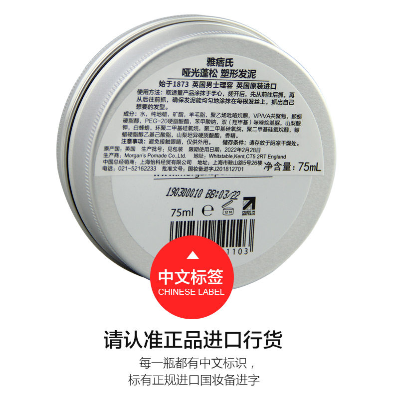 📚 摩根斯MORGAN'S雅痞氏哑光前刺发泥男士头发定型自然蓬