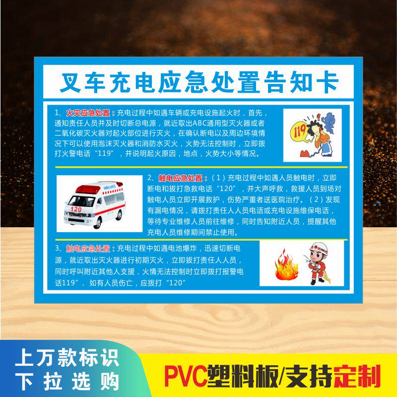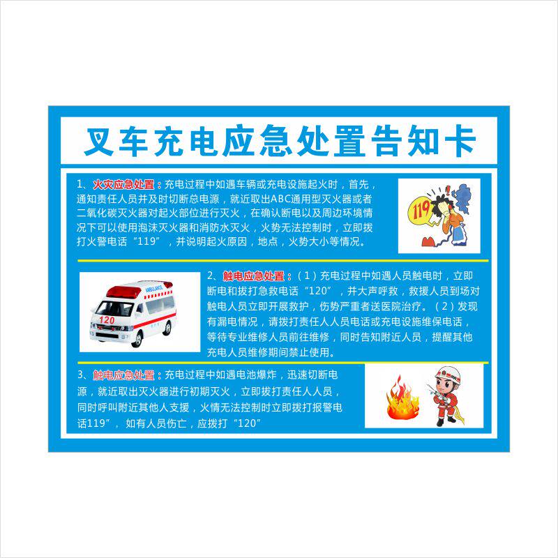 📚 叉车充电应急处置告知卡 警示标示周知卡 电动叉车充电应急处置告知卡 注意事项安全警示牌