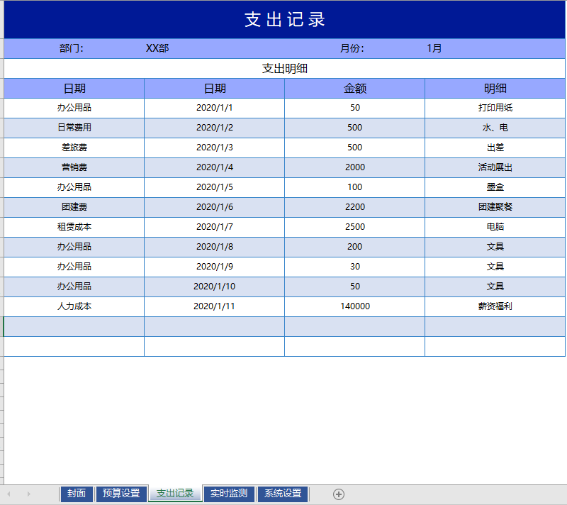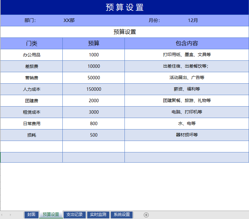 📚 简单预算管理系统 预算门类支出记录 实用性便捷高效数据直观实时监测预算类支出明细记录 预算进度Excel表格