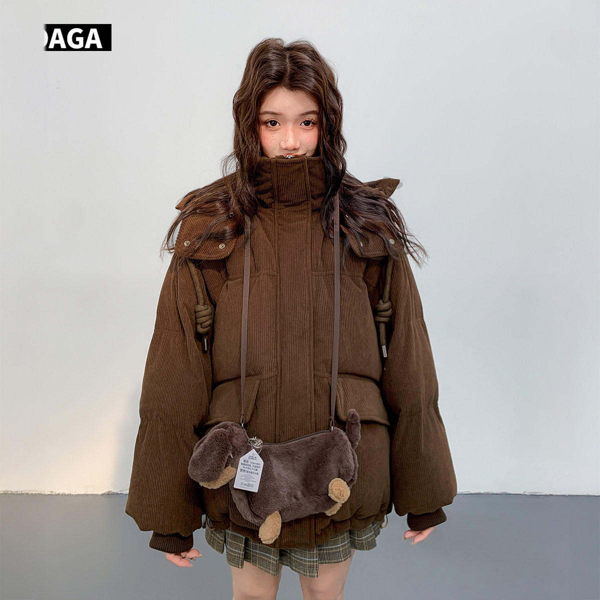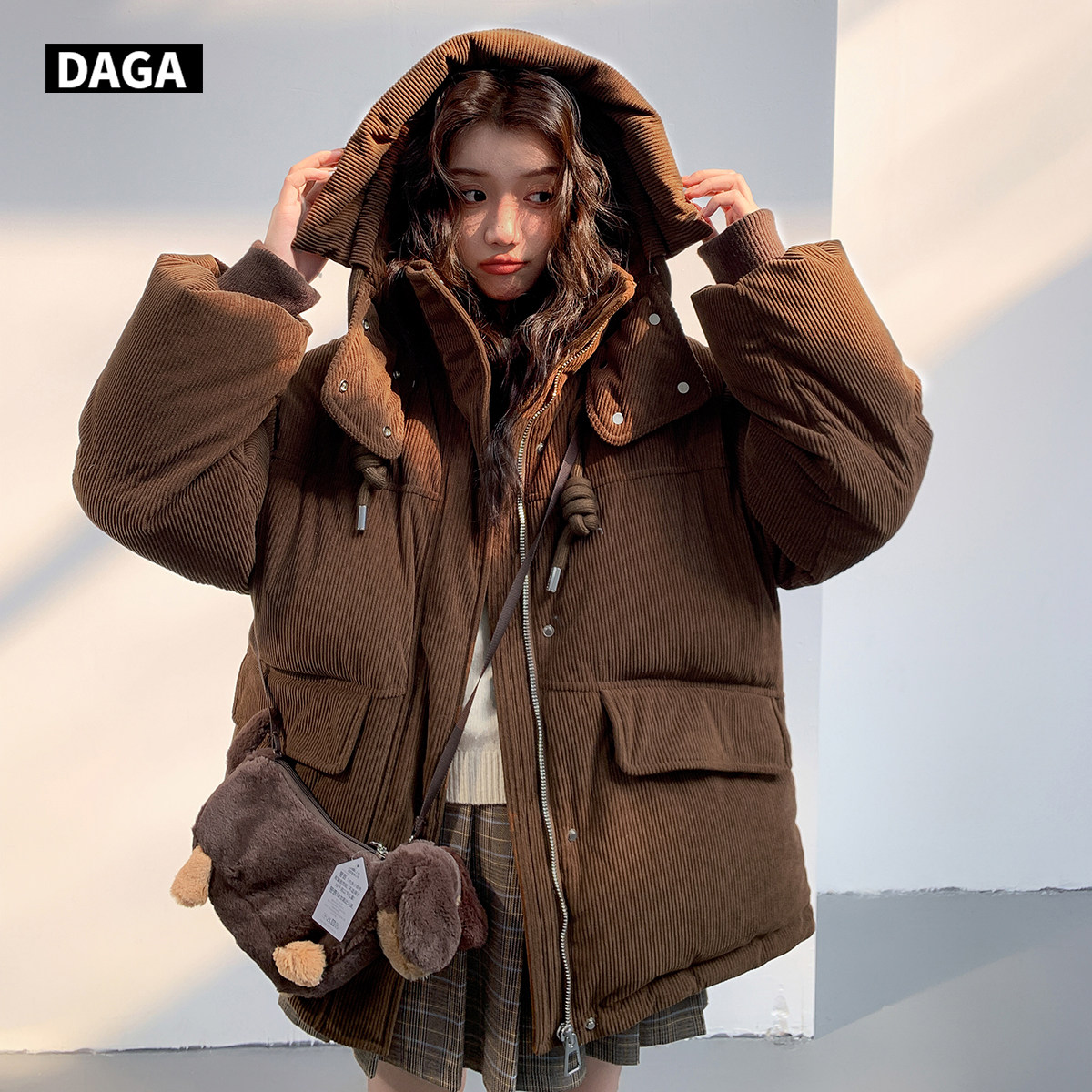 #大嘎daga #羽绒服 #高端灯芯绒 #女款羽绒服 #新款 #咖色 #短款连帽面包服 #优惠 #种草 #时尚必备