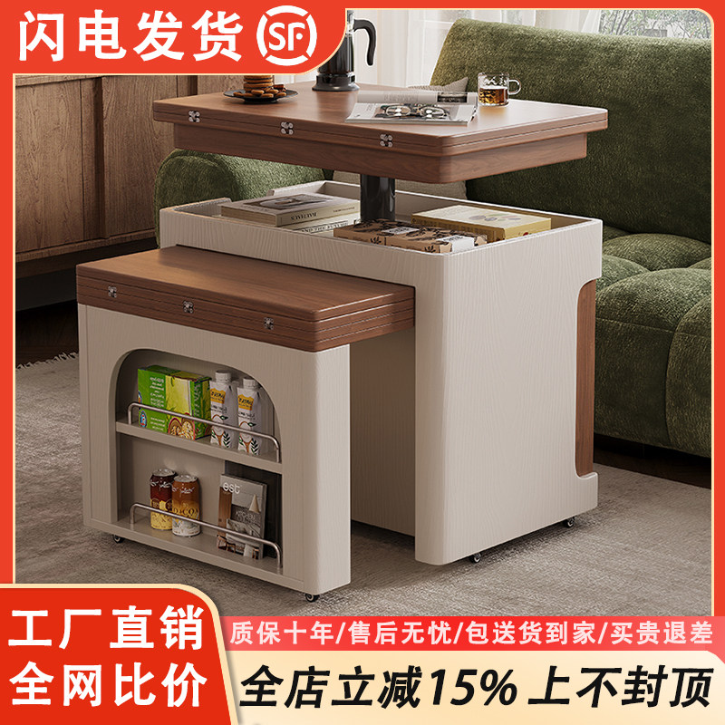 📚 可移动茶几实木家用小户型客厅多功能升降伸缩折叠沙发推车边几柜