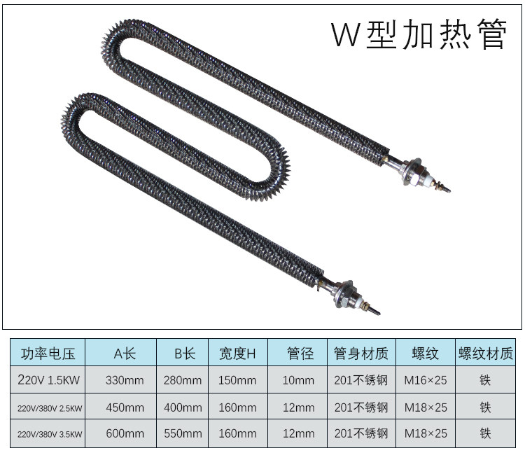 📚 干燥机翅片电热管220V 1KW1.5kw2KW 空气加热管 烘箱干烧发热管