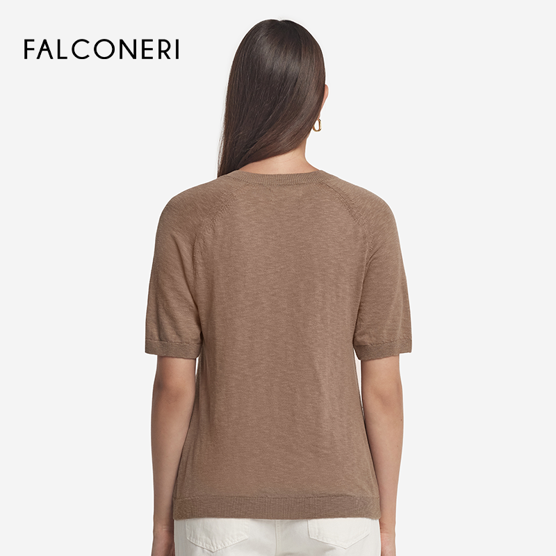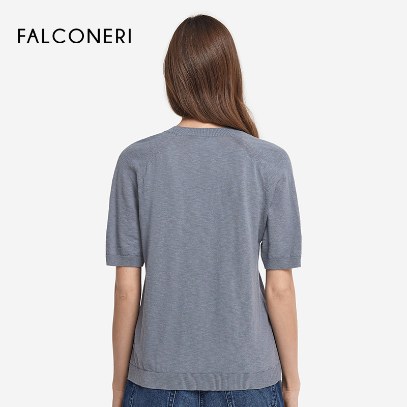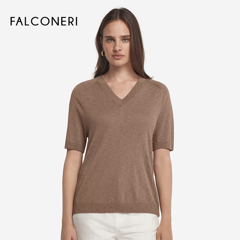 📚 【季末折扣】FALCONERI女士时尚休闲罗纹V领纯棉短袖T恤DMM490F