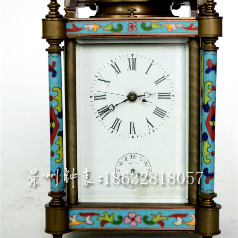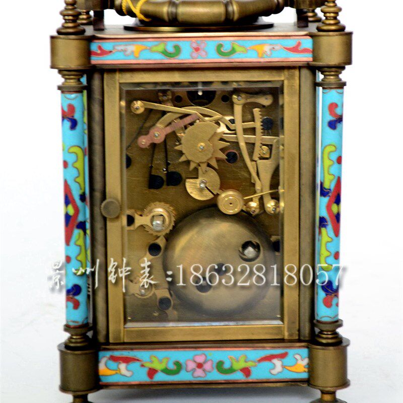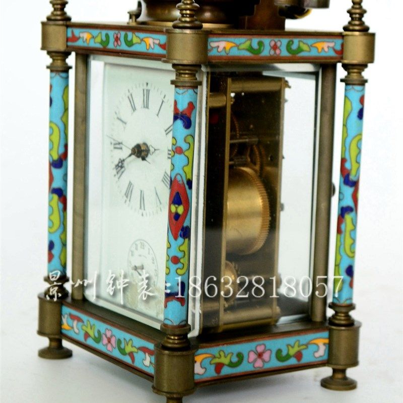 📚 皮套钟 景泰蓝机械小座钟 纯y铜游丝摆轮皮套钟 四功能报时 把玩