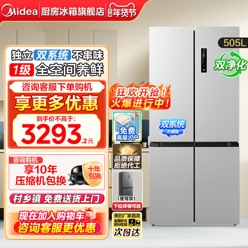 📚 【换新补贴】美的双系统循环531冰箱十字对双开四门风冷大容量