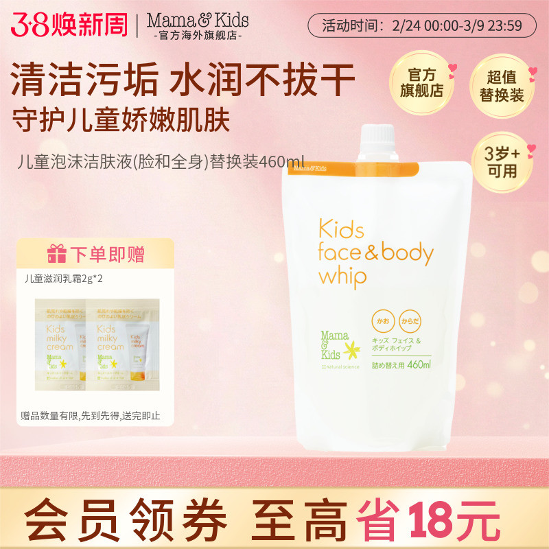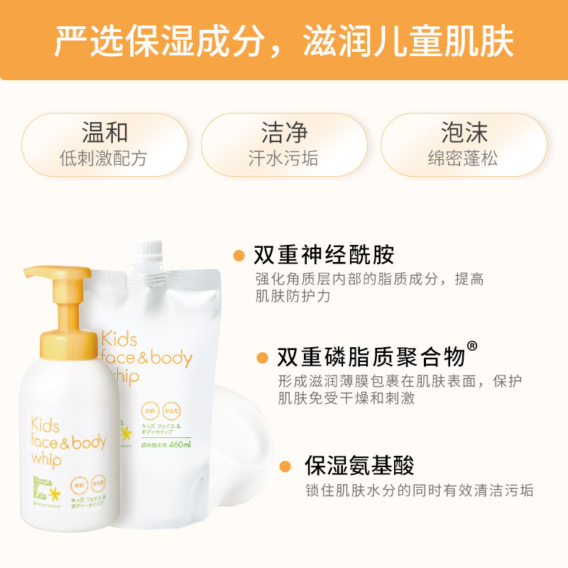 📚 MamaKids儿童泡沫洁肤液替换装温和氨基酸洁面泡泡沐浴露460ml