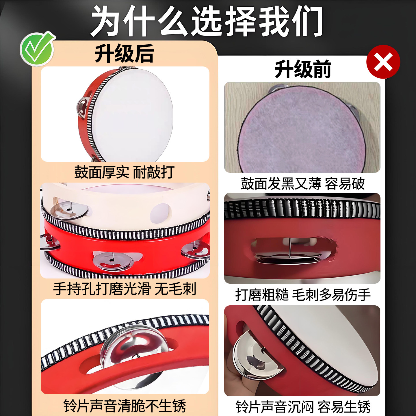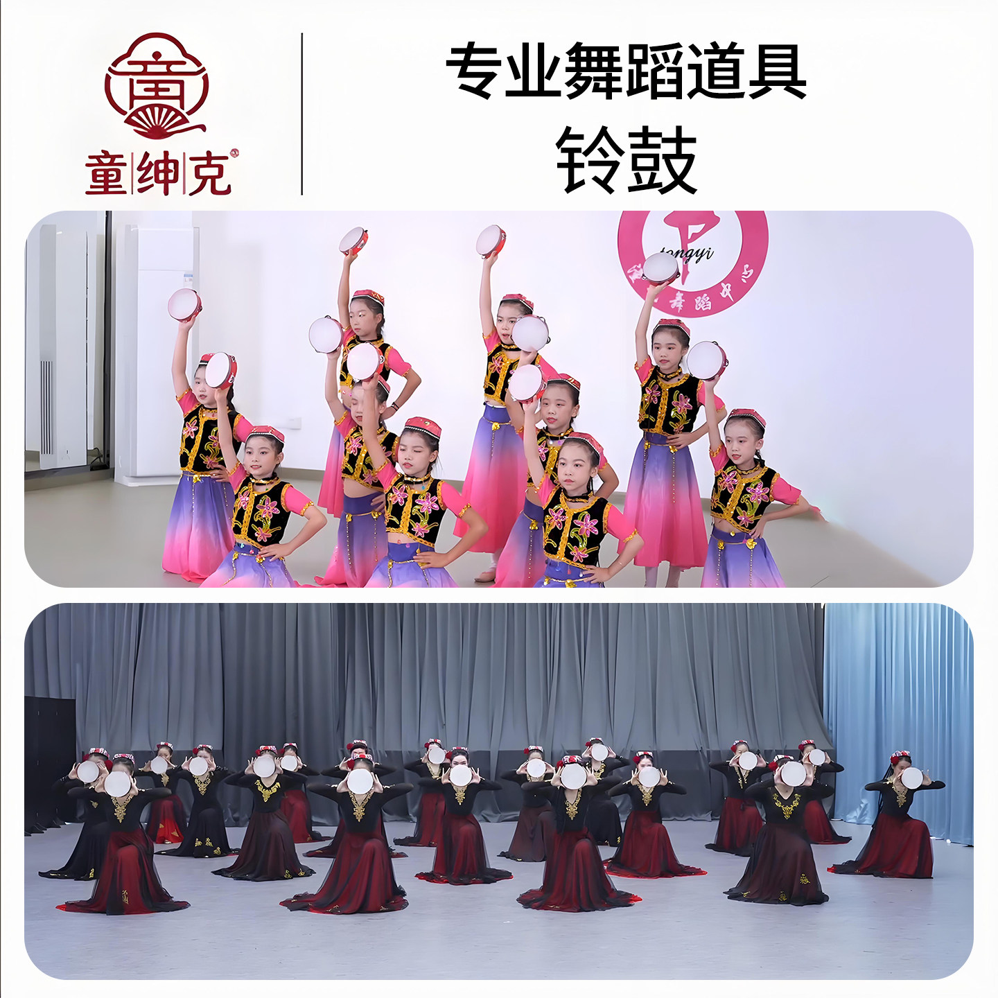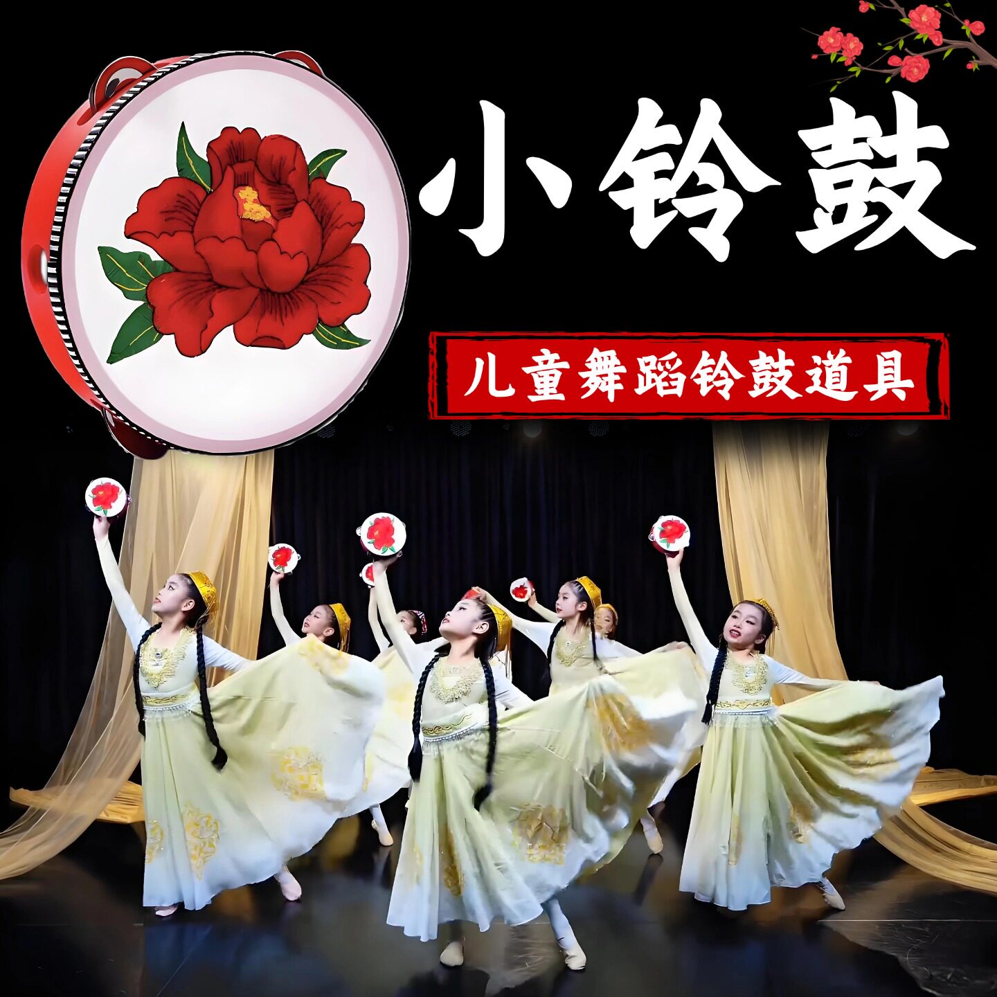 📚 铃鼓乐器儿童新疆舞小铃鼓舞蹈新年表演出道具大红八角鼓手鼓摇铃