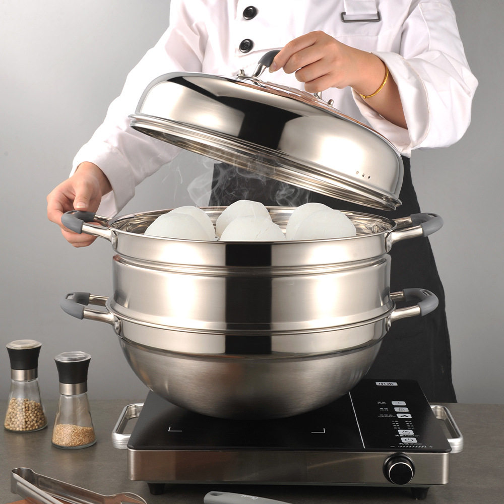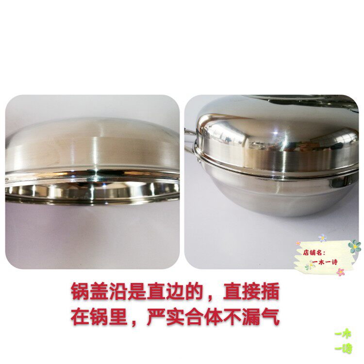 📚 创宇家家亮SUS304多用不锈钢蒸炒锅加厚复底36燃气电磁炉通用包邮