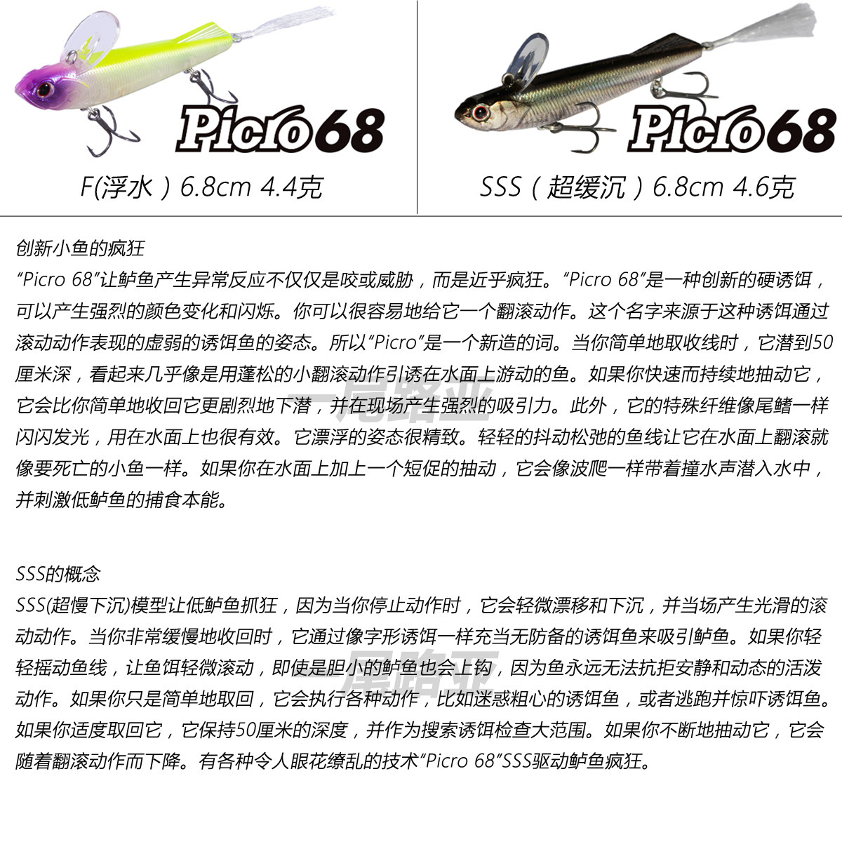 📚 日本OSP O.S.P PICRO68翻滚濒死鱼F浮水SSS超缓沉逼真I字系路亚饵