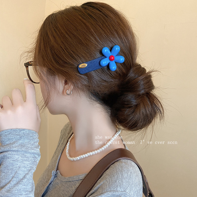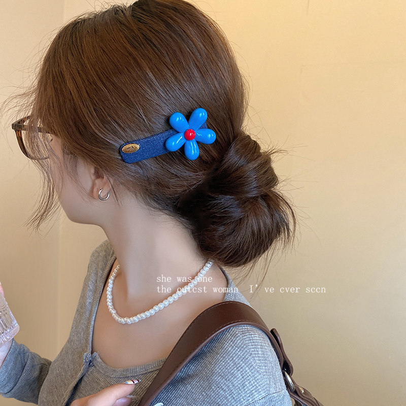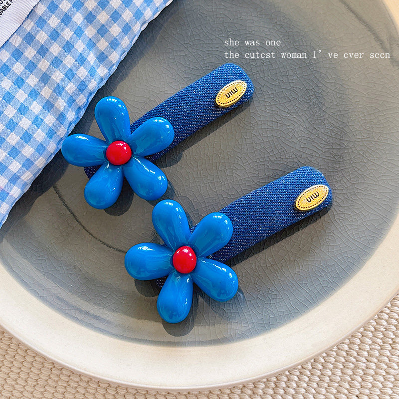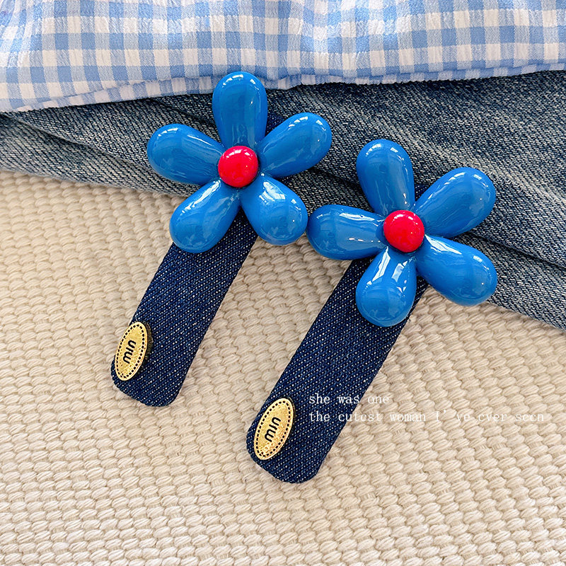 📚 韩系蓝色花朵发夹女2025新款气质时尚牛仔侧边夹发饰百搭发卡头饰