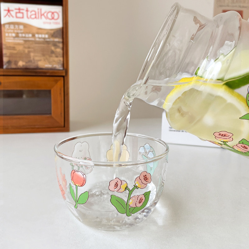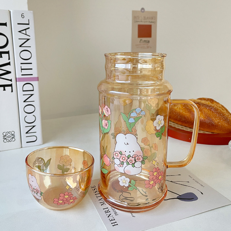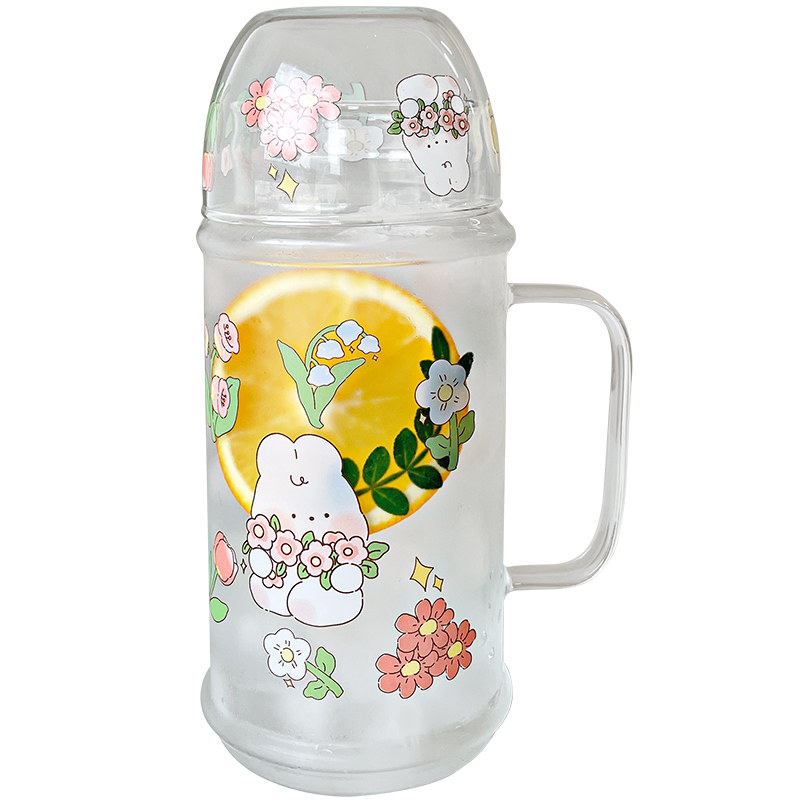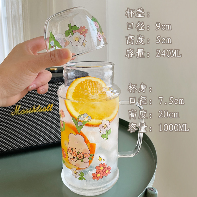 📚 卡通玻璃杯大容量耐高温喝水杯子高颜值宿舍用家用带手柄1L饮水壶