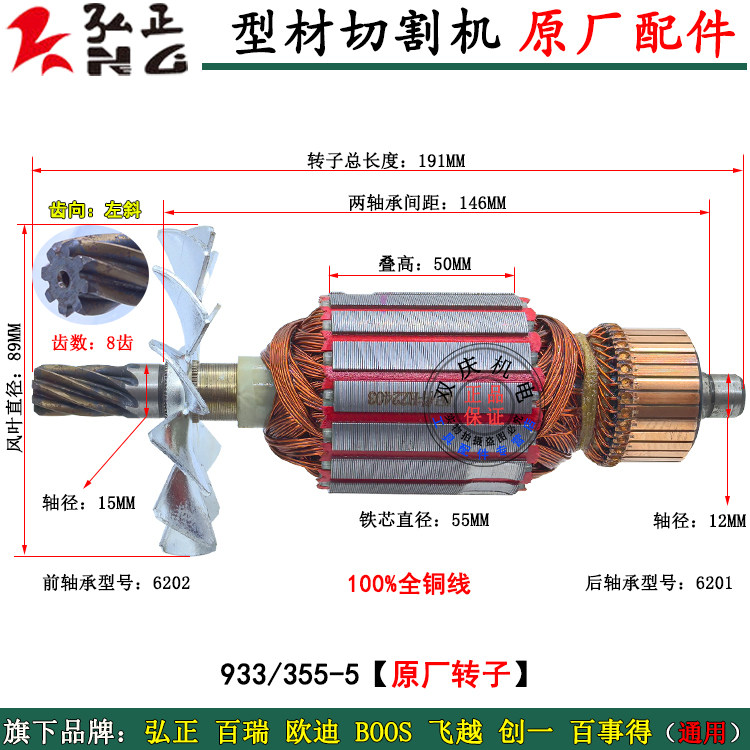 📚 弘正933钢材机配件转子定子机壳齿轮弹簧迪美355-5飞越350切割机