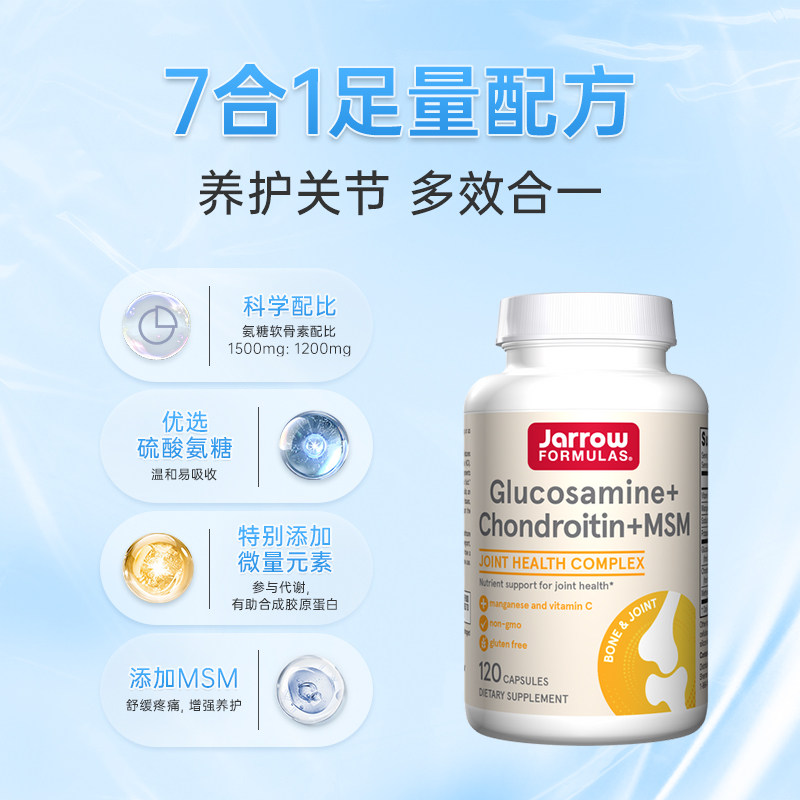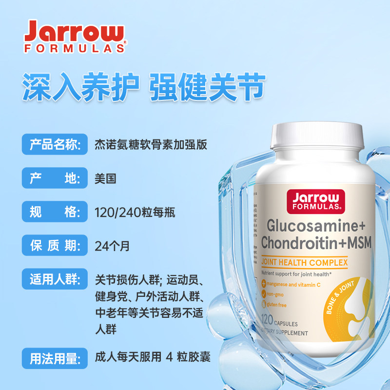 📚 Jarrow葡萄糖胺软骨素MSM美国杰诺维骨力缓解关节腿骨疼痛中老年