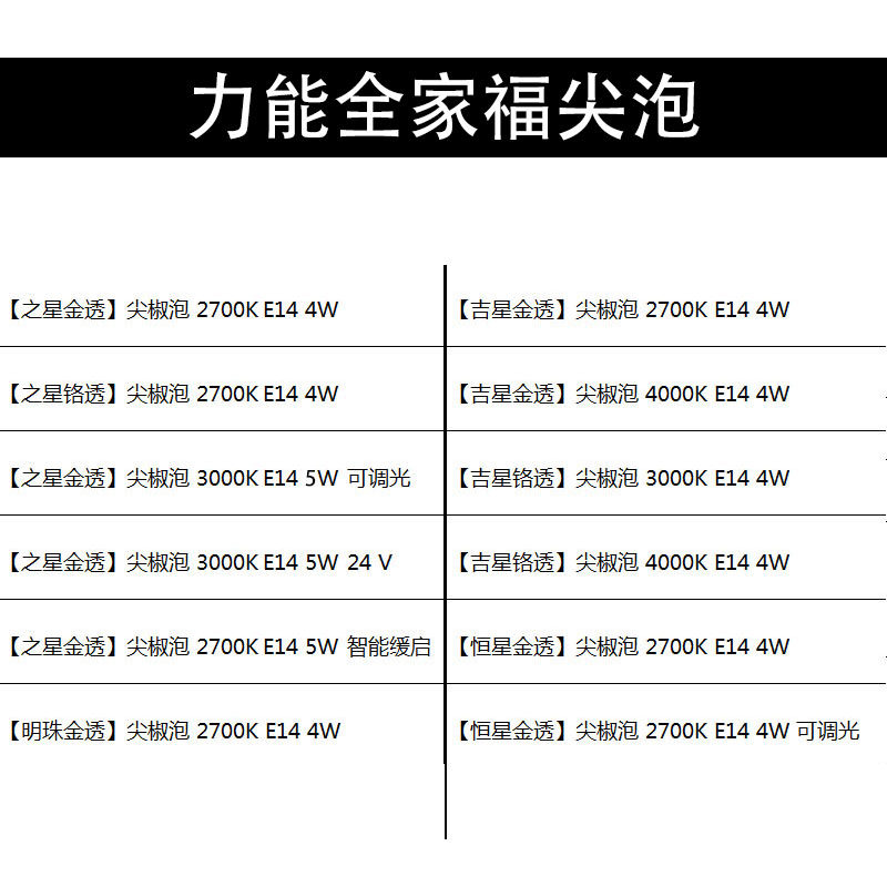 📚 力能水晶灯灯泡吉星/之星4W5W尖泡E14暖白光源可调光led蜡烛灯泡