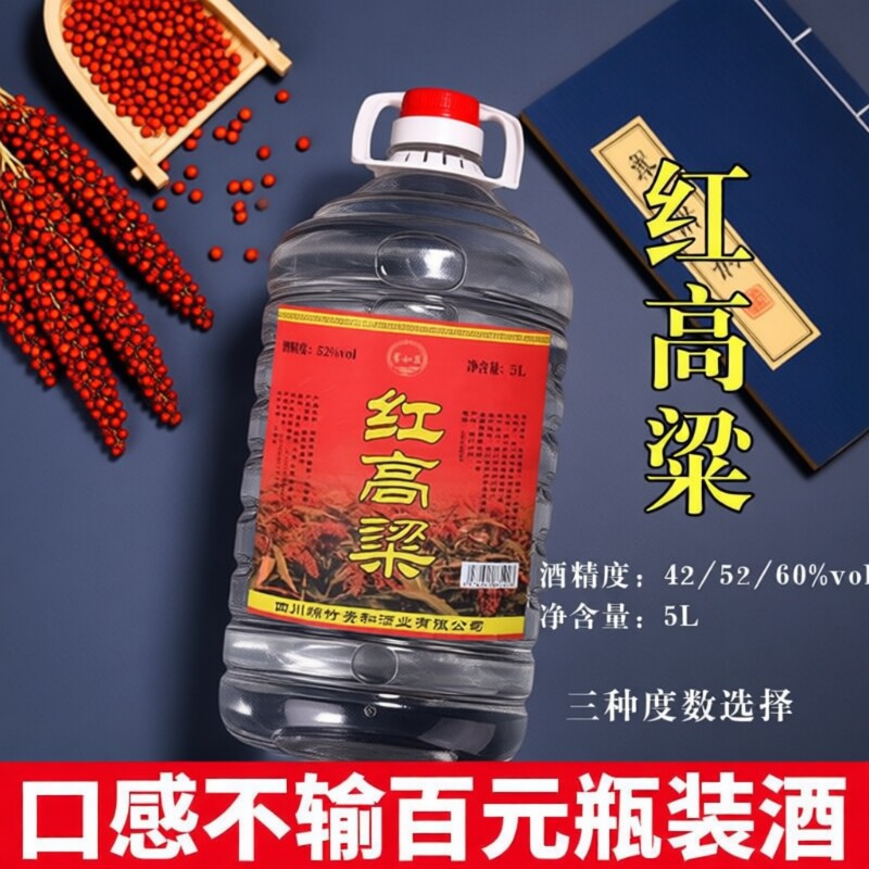 📚 泸州红高粱52度浓香型白酒纯粮食60度5L约10斤桶装散装高度泡酒